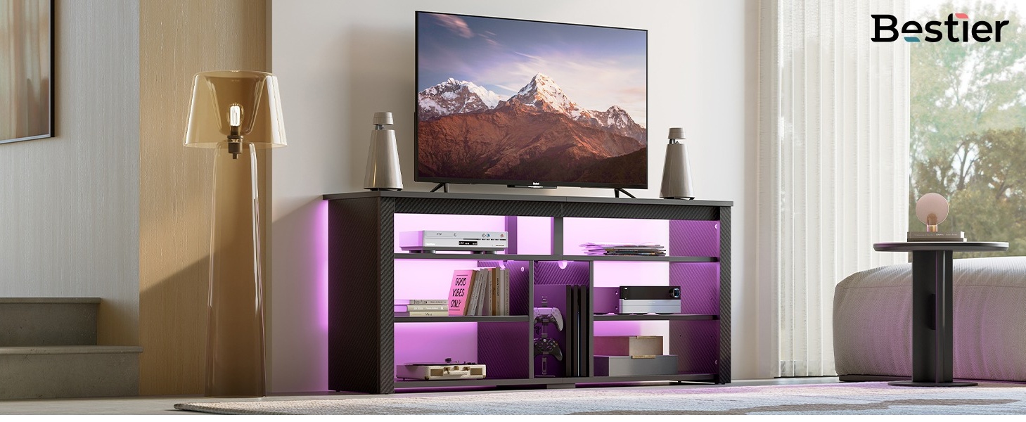 Meuble TV Bas Lumineux LED Meuble TV Blanc Pour Téléviseurs 60" ; LED 16 Couleurs, Commande Meuble Tv Console Jeu Moderne Support TV moderne : 160 cm x 34,5 cm x 52,1 cm (L x l x H) - Le support TV Bestier convient aux téléviseurs jusqu'à 178 cm. Inspiré par la modernité... Meuble TV blanc brillant 160 x 35 x 40,5 cm avec éclairage LED, 2 Étagères en verre réglables : ce meuble TV dispose de verre trempé comme étagères intermédiaires. Meuble TV moderne 4 portes 160 cm pour téléviseurs 40-49 pouces, design... Service client amical : Bestier assume l'entière responsabilité de tous les problèmes de qualité. Espace de rangement ouvert spacieux : ce centre de divertissement de jeu dispose de 5 compartiments ouverts pour PS5, DVD, routeur, consoles de jeux, Xbox, électronique, livres, magazines, etc. Support TV LED de jeu : les lumières LED intégrées en 7 couleurs différentes et 22 réglages dynamiques créent une atmosphère vivante et amusante. Support TV moderne : 160 cm x 34,5 cm x 52,1 cm (L x l x H) - Le support TV Bestier convient aux téléviseurs jusqu'à 178 cm.