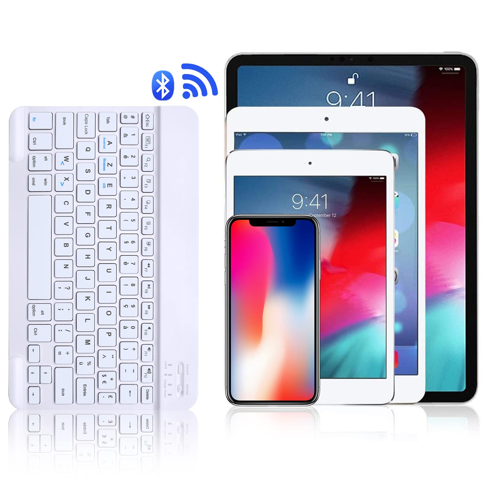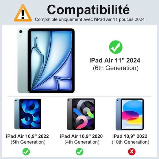 SENGBIRCH Clavier Coque iPad 10èe Génération 10,9 Pouces 2022 Lorsque vous le retirez, vous pouvez placer le clavier n'importe où et taper confortablement. Coque Ipad Air 11 Pouces 2025 SENGBIRCH Coque Clavier Pour Samsung Galaxy Tab S10 Plus/S9 FE+12,4'' - AZERTY Français Clavier Clavier Ipad ANGLES DE VUE MULTIPLES ET SMART WAKE - L'étui-clavier est doté de trois plis permettant de transformer votre ordinateur en portable et d'ajuster facilement l'angle de vue à n'importe quelle hauteur. Emballage et garantie - 1 x étui pour iPad Air 11, 1 x clavier Bluetooth, 1 x câble de chargement USB C, 1 x manuel d'utilisation. Nous vous fournissons un service de contact par email 24 heures sur 24, une garantie d'un an sans souci et une garantie de remboursement de 30 jours Coque Clavier pour iPad Air 11 Pouces M3 2025 M2 2024 - Clavier an ais layout avec tui de protection, adapt l'iPad Air 6th 11 pouces M2 2024, iPad Air 11 Pouces M3 2025, iPad Air 5th 4th Gen 10.9-inch Connexion intelligente - Après avoir connecté un appareil une fois, le clavier se rallume (deuxième utilisation ou plus), le clavier se connecte automatiquement au dernier appareil connecté, éliminant le besoin d'aller dans l'option Bluetooth à nouveau pour répéter l'opération. Frappe silencieuse - Profitez d'une expérience de frappe confortable, fluide et silencieuse grâce aux touches silencieuses Scissor Switch, conçues pour une frappe rapide et efficace, vous garantissant de ne pas manquer une touche lorsque vous travaillez ou discutez. Emballage et garantie - 1 x étui pour iPad Air 11, 1 x clavier Bluetooth, 1 x câble de chargement USB C, 1 x manuel d'utilisation. Compatible - Nouvel étui pour iPad Air 11 2024 avec clavier Bluetooth à disposition française, disposition AZERTY et touches de raccourci personnalisées pour l'iPad, y compris le volume, le contrôle de la musique, la luminosité et plus encore. Vous bénéficiez d'une expérience de frappe parfaite. Coque Clavier pour iPad Air 11'' 2024, AZERTY Français - Étui iPad Air 11 Pouces avec Fente pour Stylo, Clavier Détachable sans Fil Bluetooth, Noir Comment connecter le clavier ? 1., Veuillez charger complètement le clavier (généralement 4 heures) avant la première utilisation., 2., Allumez et appuyez sur le bouton CONNECT bouton pour activer le Bluetooth du clavier 3., Lorsque le voyant lumineux clignote, le Bluetooth du clavier est activé., 4., Activez le Bluetooth de votre Tablette., 5., Trouvez le Clavier Bluetooth 5., 0, associez-le à votre iPad., 6., TAppuyez et maintenez ''FN'' + E pour sélectionner iOS.