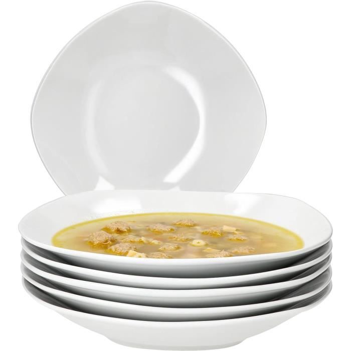 Lot de 6 Assiettes creuses en Grès, rose, D18,5 cm Cosy & Trendy - Mr MamboCat Lot de 6 assiettes creuses menthe, assiettes creuses en verre pour petit déjeuner, déjeuner et dîner Assiettes 20,3 Cm Capacité 420 Ml MamboCat Viola Service De Table 12 Pièces I Vaisselle En Porcelaine Avec Décor Floral Pour 6 Personnes I 6 Assiettes Creuses Et 6 Assiettes Plates Pour Le Petit-déjeuner, Le Déjeuner Et Le Vaisselle Moderne Lave-vaisselle Micro-ondes Contenu de l'emballage : 6 assiettes creuses menthe - Capacité optimale : environ 420 ml jusqu'à Capacité : environ 820 ml - Diamètre : 20,3 cm - Diamètre du miroir : 11 cm - Hauteur : 4,5 cm - Poids : environ 330 g. Lot 6 assiettes creuses Black round - D 23 cm ASSIETTES CREUSES ENAMELWARE 330 ML 18x3,5 CM BLANC FER ÉMAILLÉ (6... Servez des céréales et des fruits le matin, une délicieuse soupe ainsi que de la salade ou des collations, des chips, etc., le soir. Le service est fabriqué en verre robuste et durable et convient pour jusqu'à 6 personnes. Dimensions de chaque plateau : Ø 20,3 cm, diamètre du miroir 11 cm, hauteur 4,5 cm, poids : environ 330 g - Passe au micro-ondes et au lave-vaisselle Grâce à leur verre robuste, les assiettes passent au micro-ondes et au lave-vaisselle - Faciles à entretenir et idéales pour un usage quotidien. Ainsi, la vaisselle fraîche vous apporte toujours du plaisir lors de la présentation La forme douce est particulièrement harmonieuse et souligne le look moderne.