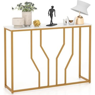 ✴️【Meuble polyvalent : 】La table console peut s'adapter parfaitement à un couloir étroit ou aux bords du canapé dans l’entrée ou derrière un canapé ! Table Salon Table Console, Meuble D'Entrée Avec Étagère, Design Géométrique Moderne Console Verre Description : Cette console élégante avec son plateau en faux marbre offre suffisamment d'espace pour placer des collations, des magazines ou des décorations. COSTWAY Table Console avec Tiroir, Table d'Entrée à 2 Niveaux avec... ✴️【Design géométrique moderne :】Un plateau en faux marbre avec un cadre géométrique en forme de papillon, qui est en métal doré, présente une touche de distinction. ✴️【Structure métallique renforcée : 】La double base géométrique en métal obtient une meilleure robustesse et une capacité de charge 75 kg. COSTWAY Table Console, Console Entrée 2 Tiroirs avec Étagères Ouvertes... Caractéristiques : Le plateau en faux marbre est élégant, durable, imperméable et facile à nettoyer Le plateau de table est spacieux pour exposer vos décorations, magazines ou collations Avec un cadre en métal pulvérisé renforcé, antirouille et charmant Kits anti-basculement pour un cadre sans oscillation pour une sécurité accrue Les repose-pieds réglables maintiennent l'ensemble stable même sur un sol inégal Dispose d'une base élargie pour favoriser la stabilité globale Applicable au salon, à l'entrée, au bureau et plus encore Une installation simple est assurée par le manuel facile à comprendre Spécifications : Couleur : blanc et or / Marron rustique Matériau : MDF, métal Dimension hors tout : 100 x 30 x 80 cm (L x l x H) Taille de la base : 80 x 30 cm (L x l) Capacité de charge du plateau : 75 kg Poids net : 9 kg Poids brut : 10,5 kg Le colis comprend : 1 x table console 1 x manuel Sa conception pulvérisée résiste efficacement à la rouille, garantissant sa durabilité. Elle présente une conception pulvérisée, résistant à la rouille pendant une utilisation de longue durée. COSTWAY Console Entrée, Table Console Effect Marbre, Design Géométrique Elle est polyvalente et capable de s'adapter aux sols inégaux à l'aide de repose-pieds réglables. ✴️【kits anti-basculement inclus :】Avec les kits anti-basculement, les renversements accidentels seront évités, ce qui la rendra sécurisé pour votre famille.