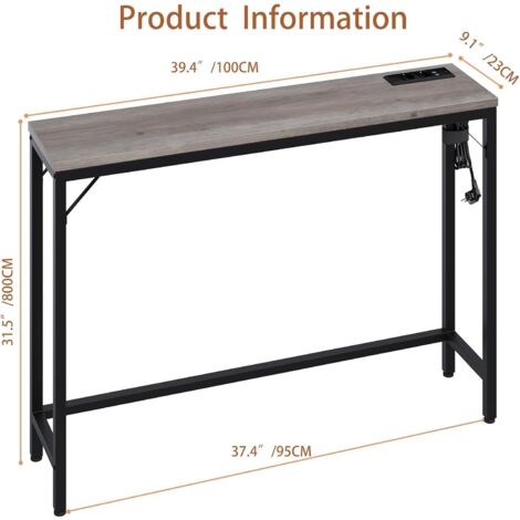 Petite Console D'entrée Table Console Style Industriel - Table D'appoint Bout De Canapé Avec Table Console étroite Avec Prise Lvhcfoh Table de Chevet étroite avec Station de Charge et LED, Table... Table d'appoint - Salon - Console étroite - Table d'entrée Design industriel : design tendance et simple de la table console de salon qui s'adapte bien à de nombreux styles de décoration, qu'ils soient traditionnels, vintage, rustiques, classiques ou modernes. EN STOCK : Table console étroite avec prise et port USB, table d'appoint 100 x 23 x 80 cm,table de couloir,petite table d'exposition,table de canapé,vintage... Idéale comme table console, table de canapé, table d'entrée, table de couloir ou table derrière le canapé. Polyvalente : cette table console mesure 100 x 23 x 80 cm (L x l x H) et peut être placée dans le salon comme table d'appoint en exploitant l'espace étroit entre le canapé et le mur, ainsi que dans le couloir comme table de couloir pour ranger les clés Gain de temps : le paquet contient des pièces clairement numérotées, des instructions détaillées ainsi que les outils nécessaires. Cette table de couloir étroite peut répondre à vos besoins de chargement quotidiens pour les lampes, les téléphones portables, les coussinets, les ordinateurs portables ou d'autres appareils.