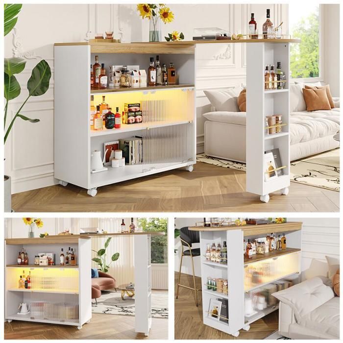 Merax Table basse, table de salon avec cadre en acier doré, placage de marbre, Blanc & Or... La teinte blanche la rend intemporelle et parfaite pour le salon, la cuisine ou la salle à manger. Table haute multifonction pour chaque maison : cette table de bar rotative avec espace de rangement convient non seulement comme îlot de cuisine ou table à manger, mais aussi comme meuble de buffet mobile ou meuble élégant dans le salon – combine fonctionnalité et style de vie moderne. Table Extensible 125-181cm Merax Table De Bar Extensible Avec Espace De Rangement Table De Bar Extensible Pivotante Design élégant et moderne : des lignes simples, des poignées en aluminium brillant et une élégante porte en verre trempé donnent à la table de bistro un look élégant. Table de Bar Extensible avec Rangement et Rotation 360° Découvrez une table de bar multifonction qui allie design moderne et praticité. Parfaite pour la cuisine, le salon ou le bureau, cette table extensible transforme chaque espace en un lieu convivial et fonctionnel. Rotation à 360° : Profitez d’un plateau tournant pratique pour servir vos invités ou organiser vos repas sans effort... Table de bar pivotante à 360° pour une utilisation flexible - La table haute moderne est équipée d'un plateau tournant stable qui permet une rotation complète à 360°. Table De Bar Extensible Blanche 125-181×39×104,5 Cm Avec Rangement Rotation 360 Table Bistrot Moderne Avec Etageres Et Portes En Verre 97060449