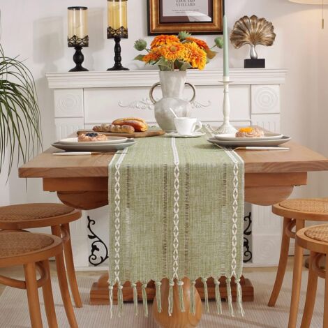 Ce magnifique chemin de table donne à la table un aspect frais et agréable. Il peut être utilisé comme pièce d'accent à d'autres endroits que la table de la salle à manger ! Chemin De Table Rustique 30x140 Cm Chemin De Table Gaze De Coton Vert Sauge 4m X 0,90 M -Passion Décor Décoration Table Rustique élégante Chemin de table vert sauge bohème rustique en coton et lin macramé - Petite nappe lavable - Décoration de table pour mariage, cuisine, salle à manger - 30 x 240... Matériaux de Haute Qualité: Fabriqué en lin de première qualité, ce chemin de table garantit une durabilité exceptionnelle et une texture luxueuse. XFSRG Chemin de Table Vert Sauge en Coton Lin Élégant Bohème Décoration NappeCe chemin de table vert sauge est l'accessoire parfait pour ajouter une touche de sophistication à votre table. Il rehausse instantanément l'apparence de votre table, créant une ambiance accueillante et élégante pour vos invités. Un léger rétrécissement se produit après le lavage ou le repassage, mais n'affecte pas l'utilisation. Le lin est connu pour sa résistance et sa capacité à conserver sa beauté au fil du temps, offrant ainsi un produit qui reste impeccable même après de nombreuses utilisations. Son design raffiné, avec des motifs géométriques délicats et des franges subtiles, crée une allure visuellement attrayante, idéale pour des occasions spéciales ou pour embellir votre quotidien. Entretien du Chemin de Table: Il est recommandé de laver le chemin de table à la main à l'eau froide. Que ce soit pour un dîner formel, une fête de famille ou simplement pour embellir votre table au quotidien, ce chemin de table est le choix idéal. Gros grain 25mm - Vert Sauge - coton Taille Applicable: Notre chemin de table réutilisable mesure 30 x 140 cm et convient aux tables rectangulaires, rondes ou carrées de 2 à 4 places. Ne pas frotter fort. Ce chemin de table combine à la fois modernité et charme intemporel, s'intégrant parfaitement dans divers styles de décoration, que ce soit minimaliste, rustique ou contemporain. Nappe Mariage Bohème Chemin De Table En Gaze Vert Sauge - 80x300cm