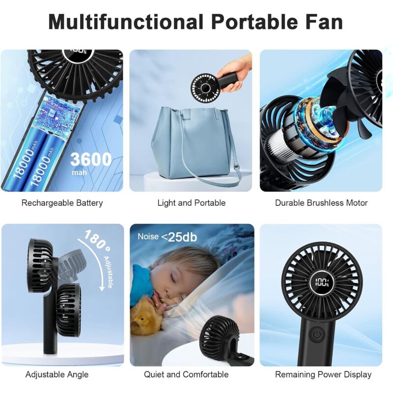 Avec fonction de rappel de batterie faible, pas besoin de deviner s'il doit être rechargé, en même temps, il peut être facilement connecté à la prise de courant/ordinateur portable/banque d'alimentation ou tout autre appareil avec port USB, de sorte que vous n'avez pas à vous soucier des problèmes d'alimentation lorsque vous êtes en déplacement ! Il y a 6 réglages de vitesse pour créer un environnement frais et confortable pour vous. Ce petit ventilateur portable peut être accroché au mur ou fixé sur une table, un bureau ou tout autre endroit plat. Fait circuler l'air dans toute la pièce, refroidit de grandes surfaces plus rapidement que les ventilateurs de table traditionnels. Couleur Noir doré Mini ventilateur de bureau à piles, 3 vitesses 【6 vitesses réglables et inclinaison réglable à 360 °】Ce ventilateur de circulation d'air dispose d'une structure de moteur sans balais de haute qualité, est silencieux, longue durée de vie et peut souffler un vent fort et doux. Par rapport à la fonction de bouton traditionnelle, ce petit ventilateur portable ne nécessite qu'une touche pour régler la fonction souhaitée. Ventilateur de bureau à piles, silencieux, affichage numérique... 1 câble de chargement, 1 crochet adhésif. Design intelligent à écran tactile : ce ventilateur de table adopte un design intelligent à écran tactile. Changez l'angle manuellement à 360 ° pour déplacer l'air du ventilateur de refroidissement là où vous en avez besoin. Ventilateur Silencieux Puissant Ventilateur De Table Mural Ultra-silencieux, Affichage Numérique Ventilateur De Camping Longue Autonomie Découvrez nos offres Ventilateur de table : Des milliers de produits les moins chers du marché | Paiement 4x | E-commerce français | Livraison sur mesure Design léger : le ventilateur de table mesure 17,2 x 13,3 x 20,5 cm (H x L x l).