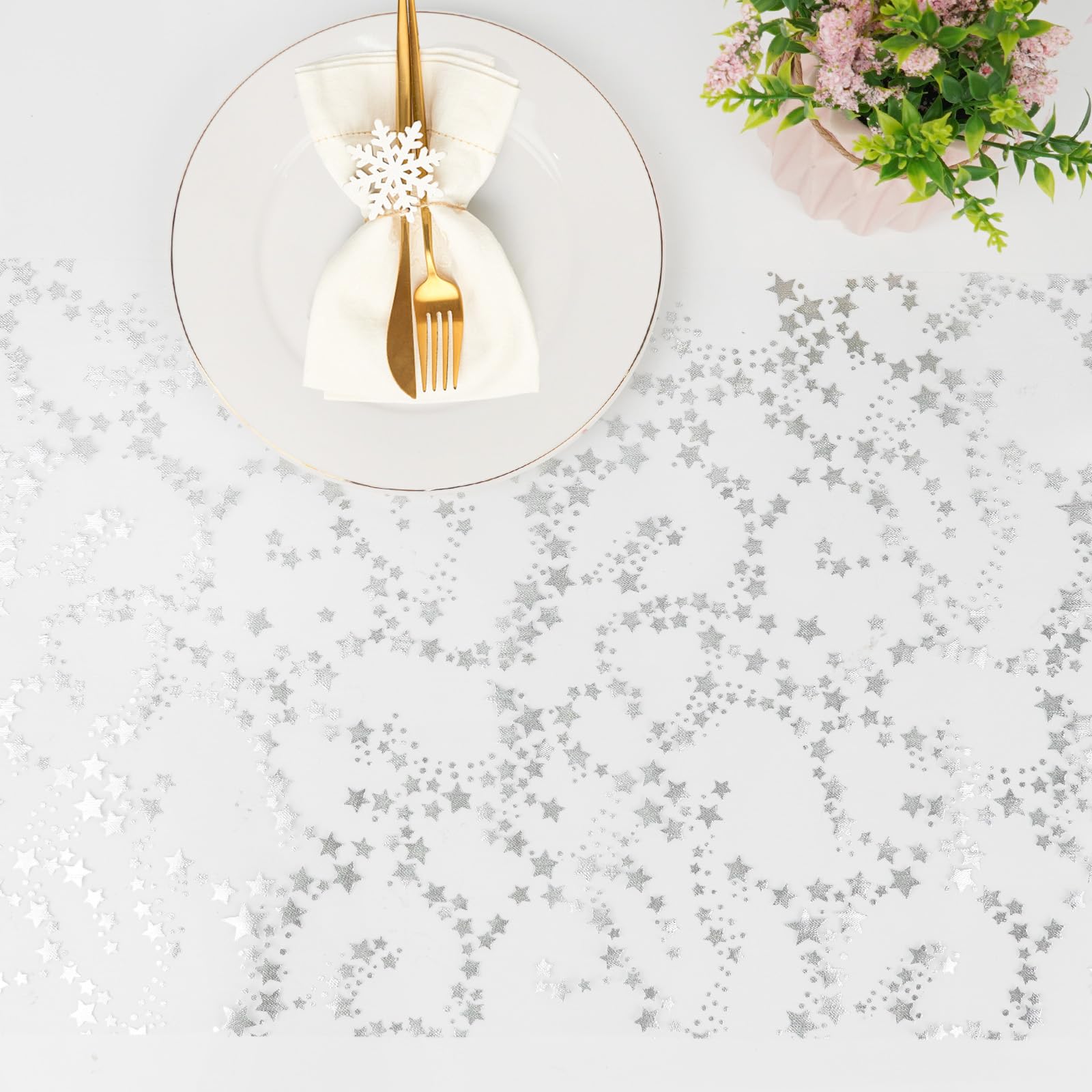Chemin de table Organza Argent Carreaux 28 x 500 cm organza étoiles, organza uni, chemin de table, décoration salle... étoiles Chemin De Table Organza Palmier, Chemin De Table Mariage Pas Cher Nappe Scintillante Paillettes ✨✨【Brillant et attrayant】Ce chemin de table argent a un effet visuel brillant qui attire le regard lorsque la lumière est réfléchie. ✨✨【Conçu avec cœur】Le chemin de table organza argent mesure 28cmx5,3m et peut accueillir plus de 10 personnes comme décoration de table. Chemin de Table La Petite Marguerite Organza Blanc et Paillettes Or... ✨✨【Matériau en organza de haute qualité】Ces drapeaux de chemin de table argent scintillants sont fabriqués en organza de haute qualité avec une surface lisse, une texture douce et brillante et un motif d'étoiles scintillantes sur la surface. ajoutant une atmosphère forte et plus attrayante à vos fêtes et événements importants., événements! Le chemin de table argent coupé peut non seulement décorer la scène festive, mais la nappe supplémentaire peut également être utilisée comme décoration DIY supplémentaire pour la table à manger, les chaises, les bouquets, les vases, les portes, les fenêtres, les terrasses, les cadeaux, etc. ✨✨【Décoration DIY】Chemin de table organza argent pour la décoration de table de communion est très adapté au recyclage.