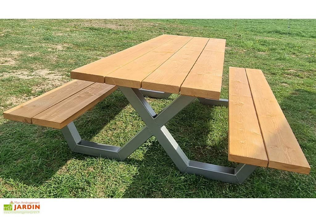 MASGAMES | Table en bois pour extérieur Munich | Sans bancs | Bois traité Autoclave Niveau IV 8 Personnes Table Pique Nique Bois Autoclave - Agencement De Jardin Aux Meilleurs Prix Mobilier Jardin Pin Résistant La table de pique-nique Lasa family est fabriquée en bois de pin avec traitement autoclavé, qui consiste à l'immersion du bois dans une solution saline à pression qui permet aux cellules du bois de s'ouvrir pour mieux absorber la solution afin de le protéger des intempéries, champignons, moisissures, insectes La table de pique-nique Lasa family est fabriquée en bois de pin avec traitement autoclavé, qui consiste à l'immersion du bois dans une solution saline à pression qui permet aux cellules du bois de s'ouvrir pour mieux absorber la solution afin de le protéger des intempéries, champignons, moisissures, insectes. Poteau 7 x 7 x 180 cm Pin sylvestre autoclavé vert FSC 100% au meilleur... ✔ Table de pic Nic Lasa Family , ✔ En bois de pin , ✔ Avec traitement autoclavé Résistant, robuste et durable, il est idéal dans le jardin pour passer de superbes journées en compagnie.