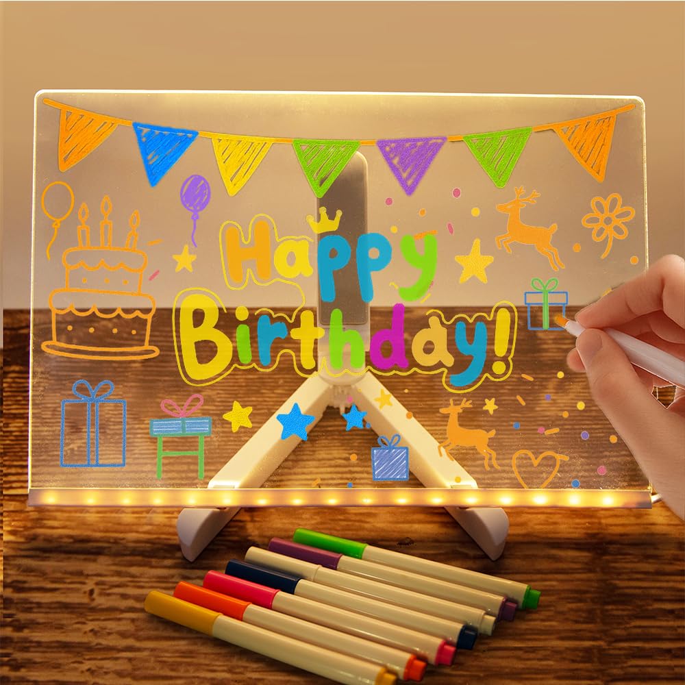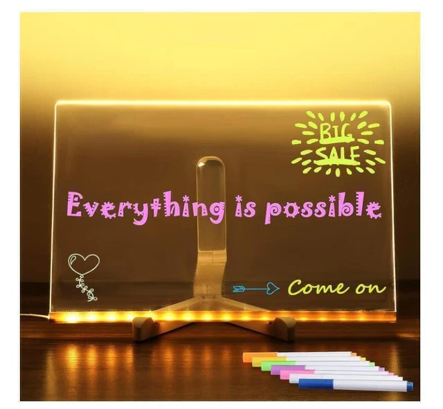 Tablette Luineuse de Dessin Nebulous Stars Nebulia - Tablette... Pour les enfants, ce tableau à dessin LED en acrylique est un excellent projet de bricolage qui capte leur attention et les aide à limiter leur utilisation des appareils électroniques. Accessoire Créatif Anti-écran Cadeau Marvin's Magic- Tablette à Dessin Lumineuse Glow Art Pour Enfants Tableau Dessin LED 30x20 Cm Effaçable Stylos Néons Il s'agit d'un tableau blanc en acrylique avec une bande lumineuse LED. Son design classique, moderne et épuré, associé à un éclairage doux, en fait un tableau idéal pour dessiner et écrire. Cela permet une utilisation encore plus personnalisée, que ce soit pour des moments de créativité, de détente ou des présentations. 🎨【Matériau】Ce tableau à dessin lumineux LED pour enfants est fabriqué en acrylique. Si la gomme ne suffit pas, vous pouvez utiliser un vaporisateur rempli d'eau pour continuer à l'effacer. Il suffit ensuite de l'essuyer avec un chiffon humide ou un essuie-tout. 🎨【2 options de montage】Choisissez entre le tableau à dessin lumineux LED inclus, un bureau, une porte, une cheminée ou une vitrine. Tableau d'affichage LED effaçable à écriture lumineuse - Créatif et lumineux