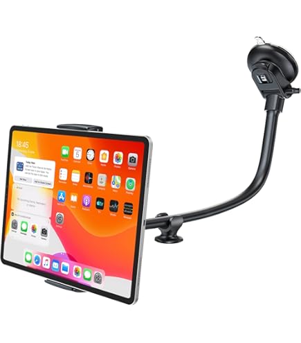 le design flexible en col de cygne vous permet de le plier dans différentes formes pour s'adapter à votre tableau de bord et répondre à vos différents angles de vue pour votre iPad. Les boutons à dégagement rapide des deux côtés vous permettent de monter ou de retirer votre appareil en quelques secondes d'une seule main. 【Ultra forte ventouse 】Ce support pour tablette est doté d'un système de verrouillage à une touche, associé à une couche de gel visqueux qui adhère solidement aux surfaces lisses telles que les pare-brise et les tableaux de bord. 【Support de tablette col de cygne pour voiture】Support pour iPad pour voiture Avec sa structure épaisse en aluminium caoutchouté, recouvert à l'extérieur d'une couche de caoutchouc souple TPU résistante. Support Tablette de Voiture avec Ventouse, Aozcu Support Tablette Convient à la plupart des voitures, camions, SUV, camions, taxis ; bon assistant pour Uber, Lyft, Room Drivers. Good car accessories gift and travel essentials for family! Bon choix pour la plupart des voitures, camionnettes, SUV, camions, taxis avec le tuyau en aluminium durable de 34CM. ¿¿Simple à régler et angle de vue de 360... 【Compatibilité universelle】ce support de tablette de voiture est compatible avec tous les smartphones et tablettes de 4,7 à 11 pouces, y compris iPad Mini 6/5/4/3/2/1, iPad Air (11, 6e/5e/4e/3e/2ème/1ère génération), iPad 10/9/8/7/6/5/4/3/2/1, iPad Pro 24., 0., 6 cm/26 cm., . Extended side arms with soft rubber pads make Coolpow ipad car mount suitable for tablet with normal protective case. La pince métallique renforcée avec silicone antidérapant maintient votre tablette en toute sécurité. Support IPad Voiture Universel Col De Cygne Flexible, Porte IPad Camion Support Tablette Voiture LI-Support Tablette avec col de Cygne de, Support Tablette Réglable... Le système de verrouillage empêche l'air de pénétrer dans la ventouse et empêche le desserrage ou le déplacement.