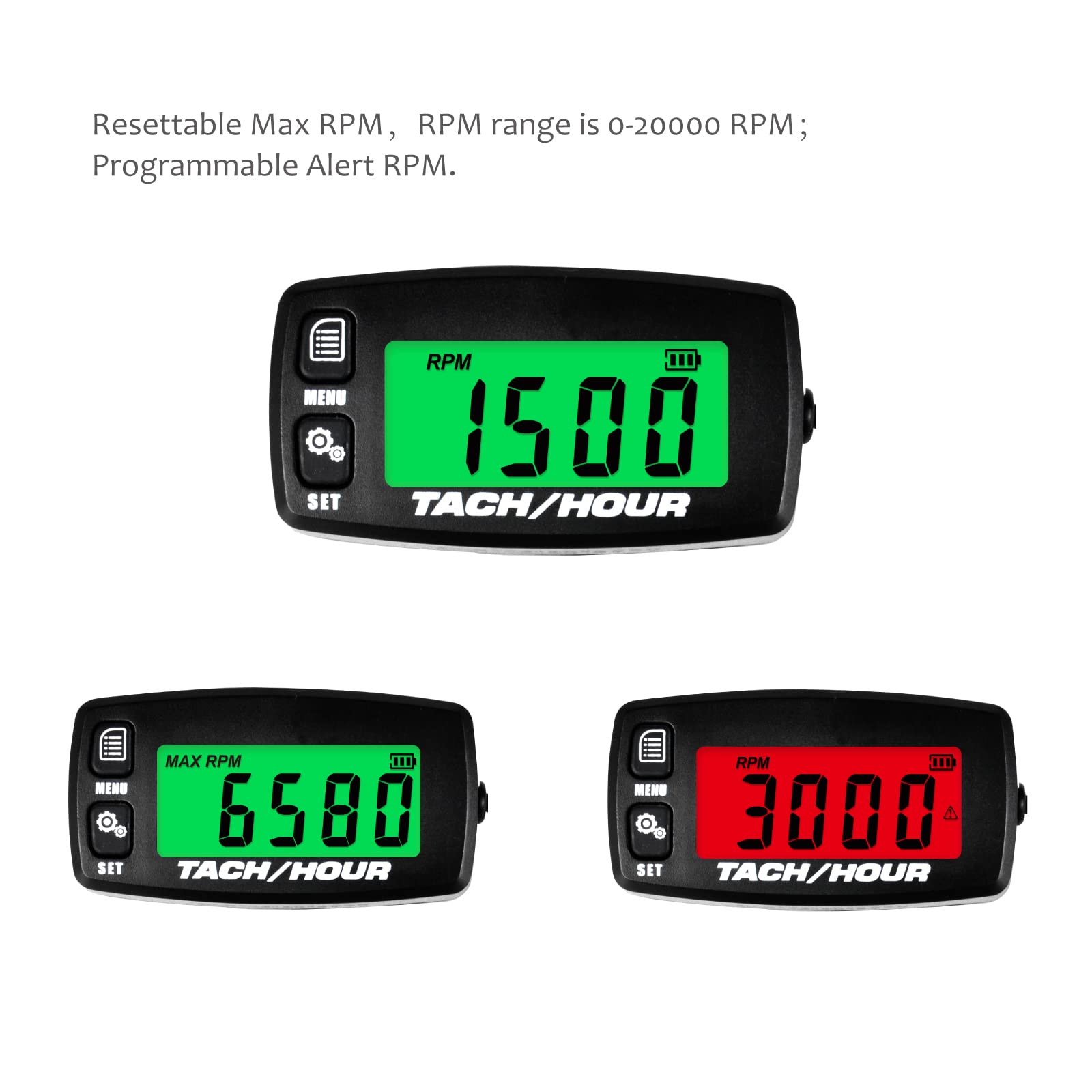 Il fonctionne bien à des températures allant de -40 °C à +70 °C. Plage:0-99999H,précision:0,1H/1H. Rétroéclairage Réglable NInE-ROnG Compteur Multifonction Numérique Tach Compteur Horaire Horloge Température RPM Maintenance Batterie Remplaçable Avec Rétroéclairage Pour Petit Moteur Tondeuse à Gazon Moteur Tondeuse ATV Tachymètre Digital 9 Modes Allumage Jayron Rétro-éclairage LCD Tachymètre Huile Moteur eau Thermomètre Jauge Affichage Numérique Batterie Remplaçable pour Moto ATV Bateau Marin Compresseur Nettoyeurs (TS001... SVC----Maintient la jauge de rappel, le temps de suivi du compte à rebours, le rappel de l'entretien, tel que le remplacement du filtre à air, la vidange d'huile., Plage 0~200H. NInE-ROnG : Compteurs d'Heures Haute Précision, Indicateurs de Batterie Durables, Multimètres pour Matériel de Jardinage, Véhicules Électriques et Transport – Minuteries Quotidiennes, Veilleuses Éco et Hygromètres Compacts pour une Vie Sécurisée et Ludique. Fonction du produit Fonction tachymètre (RPM) 9 modes d'allumage programmables différents (1P1R/1P2R/2P1R/3P1R/3P2R/4P1R/5P2R/6P1R/8P1R) Le tachymètre enregistre la vitesse de rotation actuelle de l'arbre à cames en tête et de l'arbre à cames en tête. Autres----Arrêt de l'utilisateur ; batterie remplaçable ; processus de résine époxy : prévention des chocs et de l'usure, résistance à la chaleur, étanchéité IP67 ; accessoires ; assistance à l'acheteur Installation et autres caractéristiques Fonction de mesure de la température Thermomètre----Vous pouvez choisir l'unité de température ℃/℉ en fonction des habitudes d'utilisation et définir la valeur d'alerte de surchauffe pour détecter la température du moteur Alerte paramétrable : Signalement de dépassement selon seuil prédéfini., Unités interchangeables ℃/℉., Plage : -20℃ à 220℃ (-4℉ à 428℉). Lorsque le moteur est arrêté, l'écran affiche la durée totale de fonctionnement du moteur Fonction compteur horaire (TOT) Jauge de rappel d'entretien, temps de suivi du compte à rebours, rappel de l'entretien, tel que le remplacement du filtre à air, la vidange d'huile Test TEMP haut et bas 4 Plage de mesure du régime en option : r1, r2... Le bouton peut résister à une certaine pression et avoir une longue durée de vie. Rétroéclairage----3 modes de rétroéclairage sélectionnables : ON/OFF/AUT, en outre, rétroéclairage rouge avertissant d'un dépassement de régime ou de température Température MAX : Valeur historique maximale enregistrée. Harley-Davidson- Jauge de niveau et température d'huile affichés sur un