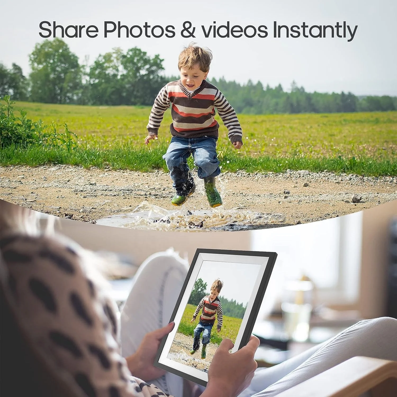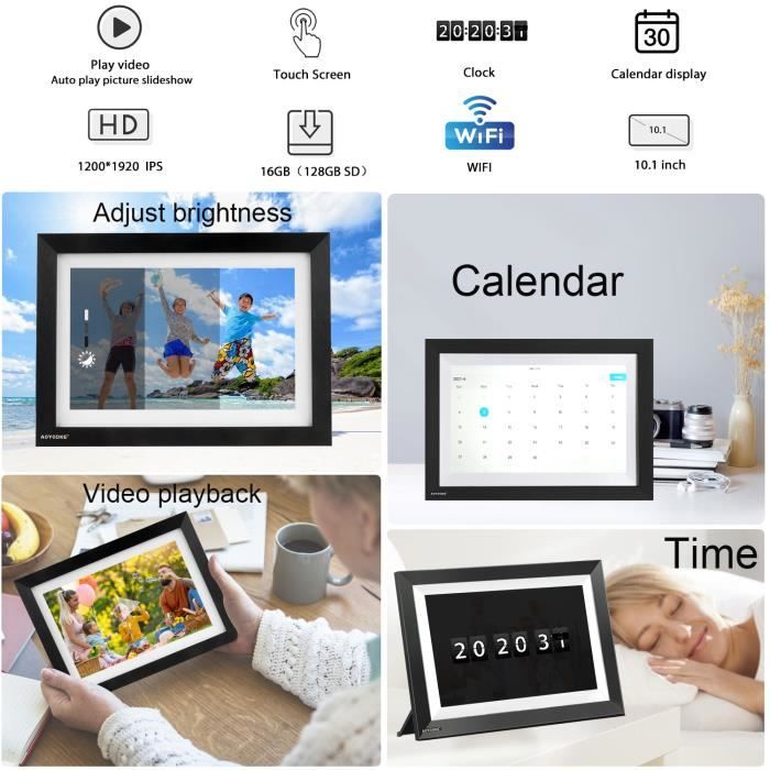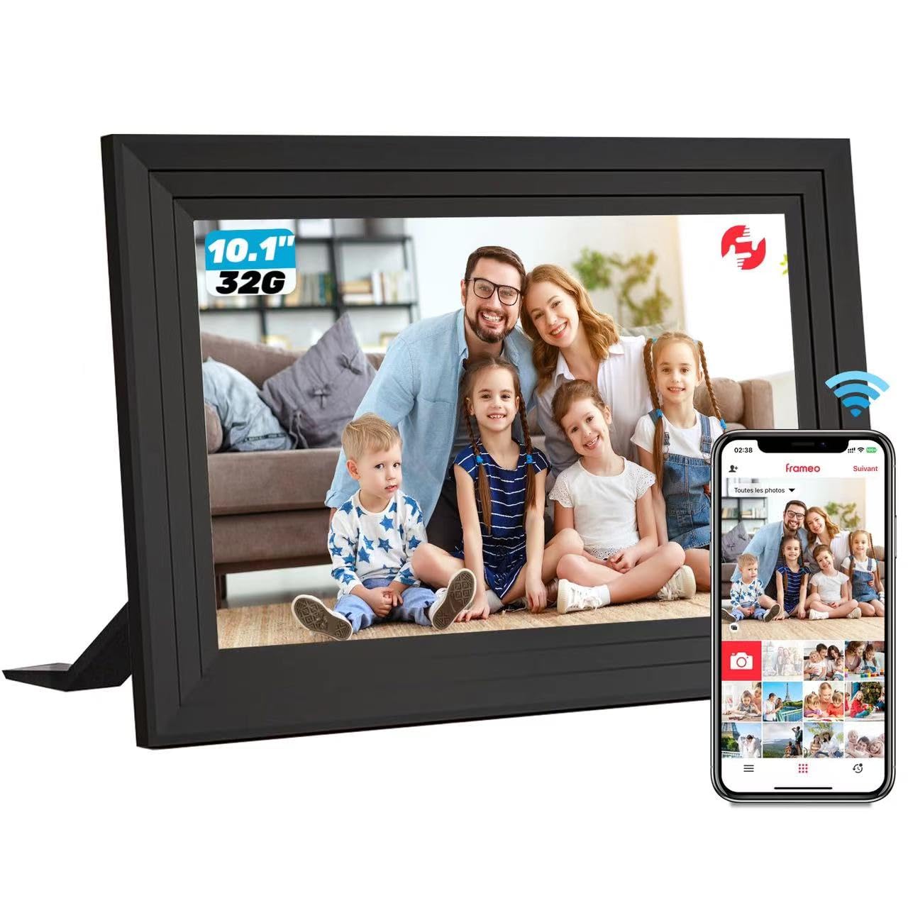 Plus de 40 000 photos stockées : le cadre photo WiFi Podoor vous offre une énorme capacité de stockage avec 16 Go de mémoire intégrée (environ 40 000 photos à 300 Ko / PC). Sélectionnez un ou plusieurs récepteurs à partager. Partagez facilement et de manière innovante avec le cadre photo Smart Podoor. EXCELLENT ANNONCE D'IMAGE : un écran IPS de haute qualité de 10,1 pouces (angle de vision 178°) avec une résolution de 1280 x 800 et un rapport hauteur/largeur de 16:10 rappelle vos précieux souvenirs. Le mode veille adapté, la luminosité réglable, l'allumage et l'extinction de la minuterie et la rotation automatique soutiennent votre meilleure expérience visuelle. Essuyez les photos, parcourez la galerie, effacez les photos ou maintenez le diaporama. RESTEZ ENSEMBLE AVEC LA FAMILLE : Le cadre photo numérique Podoor Wi-Fi peut mettre à jour vos moments de vie avec vos proches rapidement et n'importe où. L'écran tactile de 10,1 pouces avec une résolution de 1280 x 800 reste clair sous n'importe quelle lumière. Facile à utiliser. Partagez instantanément des moments via l'application. Les photos ne sont enregistrées que localement dans le cadre photo. AGFA Photo Realiview APF1560WIFI - Cadre Photo Numérique avec WiFi et Cadeau parfait pour vous et vos proches pour la fête des mères, la fête des pères, un anniversaire, un anniversaire de mariage, Noël, etc. La mémoire intégrée de 16 Go offre une énorme capacité de stockage. Juste quelques étapes pour terminer la configuration et l'écran tactile intuitif rendent l'utilisation beaucoup plus facile que jamais. Coent télécharger avec YouTube Preiu avec Android Pas besoin de créer un compte, pas de compte Facebook ou e-mail, il suffit d'installer l'application « Frameo » sur votre smartphone et de profiter de merveilleux moments sur le cadre photo électronique Podoor en quelques secondes Protection des données et garantie sûre et sans travail : l'application pour smartphone utilise Secure Device Grid (SDG) pour une communication cryptée sécurisée de bout en bout et ne stocke pas les photos et n'a pas accès. C'est un cadeau parfait pour les aînés de se sentir connectés à la jeune génération. Cadre Photo Numérique Aorpdd WiFi - 10.1 Pouces,IPS Écran Tactile HD, Mémoire De 32 Go, Rotation Automatique,Partagez Des Photos Via Frameo App,Noir Cadre Photo Numérique WiFi 10.1 Pouces TMISHION Cadre photo électronique Cadre photo numérique 7 pouces HD... Signes d'image Vous pouvez ajouter des photos et des vidéos que vous souhaitez envoyer, signatures d'image/messages pour rendre votre raconte d'histoires plus vivant. En utilisant la Secure Device Grid (SDG) pour une communication sécurisée entre Frameo et les cadres photo numériques, les images restent privées et ne sont que déchiffrées et stockées localement dans le cadre photo. Grâce à la connexion Wi-Fi, vous pouvez partager vos photos et vidéos gratuitement et en toute sécurité depuis n'importe où et n'importe quand. Un excellent cadeau pour les nouveaux parents, grands-parents, jeunes mariés, les enfants de collège, les familles ou les amis séparés par distance. Le cadre photo numérique dispose de plusieurs fonctions de réglage, par exemple Marche/arrêt automatique, rotation automatique, luminosité, plein écran, mode diaporama, intervalle, effet de transition, etc. Cela aide à rester près des membres de votre famille. Télécharger l'application « Frameo ».