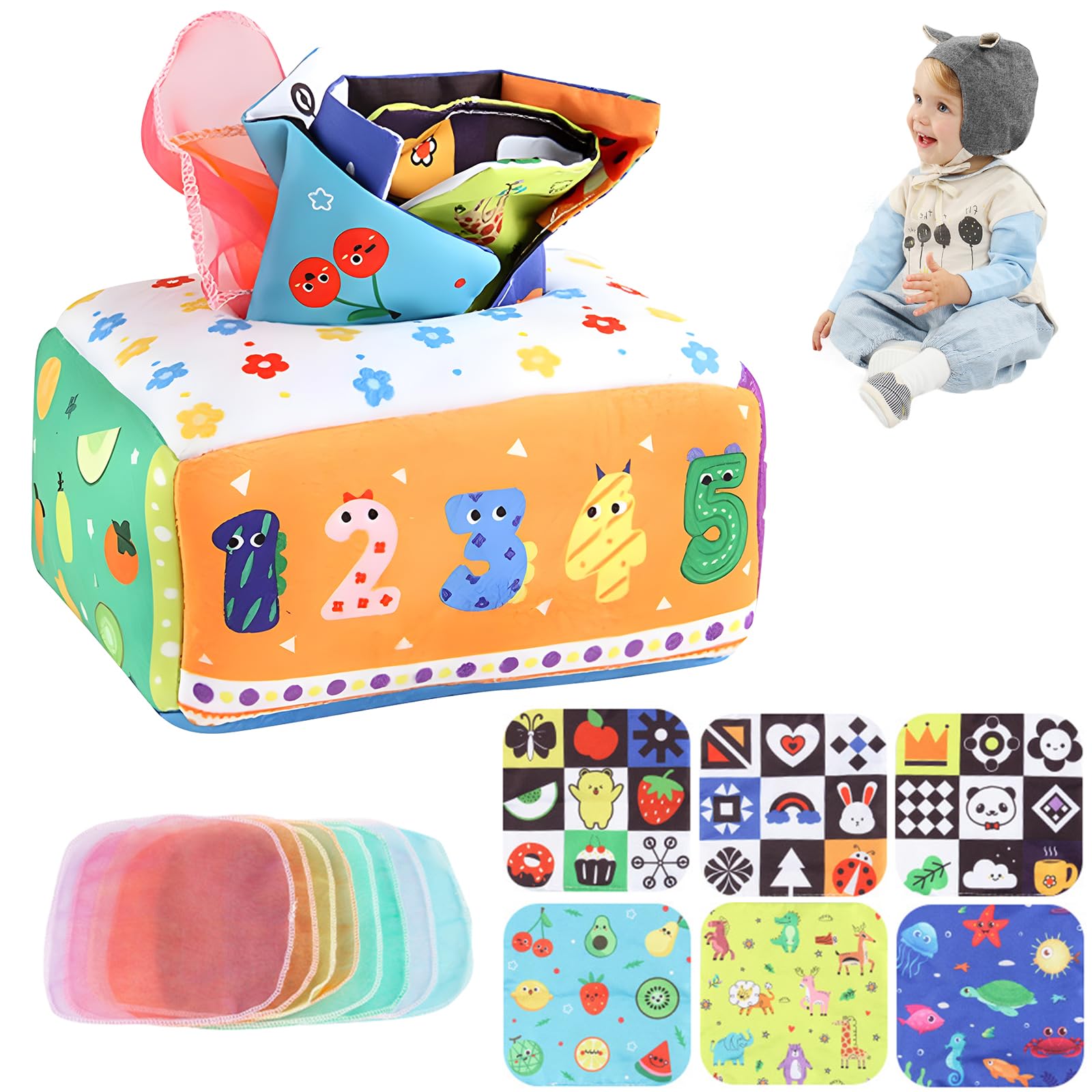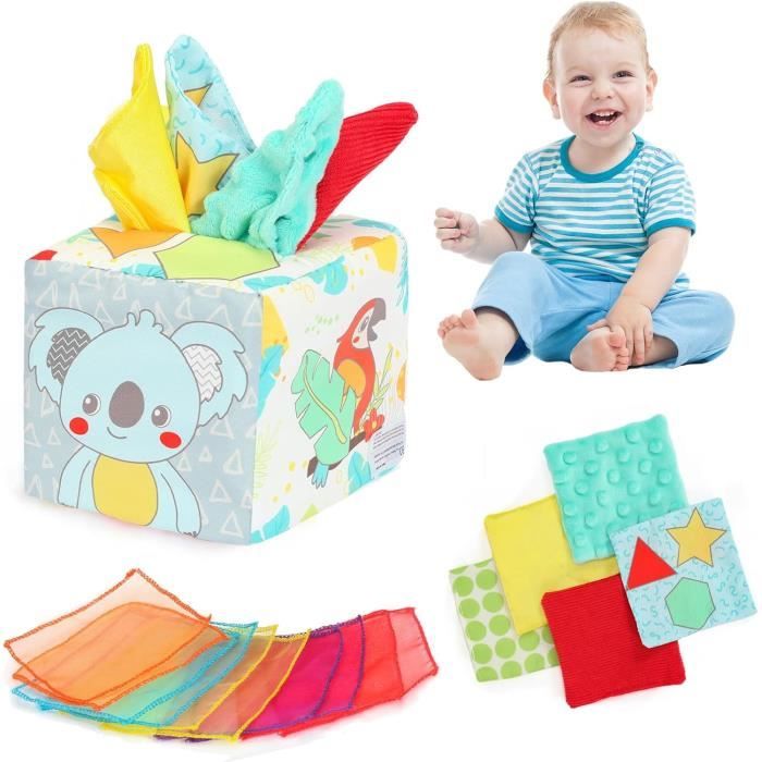 Jouet Développement Motricité Fine Foulards Colorés Cube Boîte à Lingettes Et Pop Up Lapin Taf Toys DINORUN Jouet Bebe 6 Mois Jeux Montessori Jouet Sensoriel Bebe Boîte à Mouchoirs Jouets D'activité Et De Développement Pour Bébés 6 12 Jouet éducatif Sensoriel Textures Sons Jouets sensoriels pour bébé de 6 à 12 mois : nos jouets sensoriels comprennent 4 mouchoirs froissés et 8 écharpes colorées Jouet éducatif 1 An Jouet Montessori Pop-up DINORUN - Éveil Musical Pour Bébés 12-18 Mois Jeu Pop-up Bébé 1 An 【Jouet bebe avec matériel de sécurité】Cette boîte à mouchoirs pour bébé est fabriquée à partir de matériaux de qualité et est douce, durable et adaptée aux enfants. Il s'agit d'un jouet Montessori pour les bébés de 6 à 12 mois, qui amusera les bébés pendant des heures et réduira le gaspillage de mouchoirs en papier. [Jouets d'activité et de développement]En tirant, en saisissant et en relâchant les écharpes, les mains de votre bébé peuvent être bien exercées, ce qui favorise le... Il peut être lavé sans se décolorer, et vous pouvez être sûr que votre bébé peut jouer. Il s'agit d'un jouet Montessori pour les bébés de 6 à 12 mois, qui amusera les bébés pendant des heures et réduira le gaspillage de mouchoirs en papier. 【Jouets d'activité et de développement】En tirant, en saisissant et en relâchant les écharpes, les mains de votre bébé peuvent être bien exercées, ce qui favorise le développement de la motricité fine et de la coordination œil-main. 【Boîtes de mouchoirs alternatives】Nous avons conçu ce jouet sensoriel sûr et amusant en simulant le comportement d'un bébé qui aime tirer sur les mouchoirs.