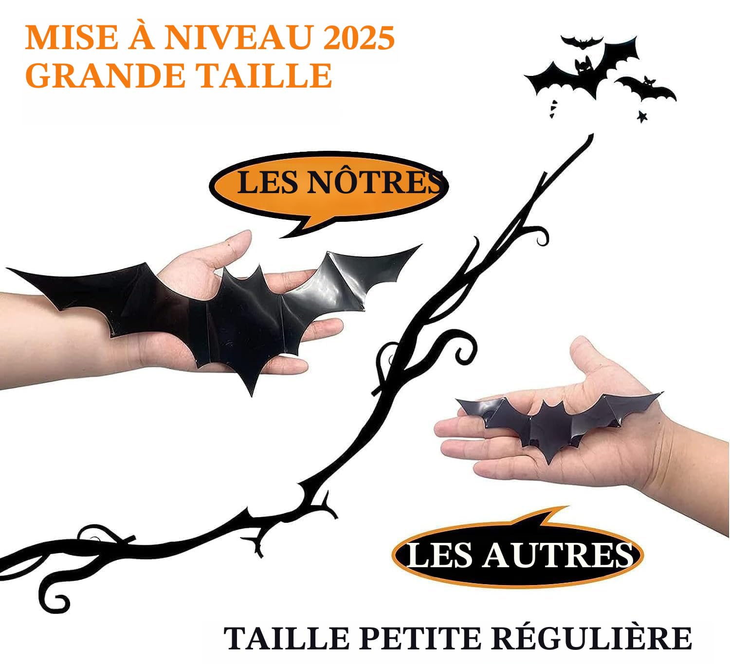 Déco Fête Halloween Thème Lot De 60 Décorations D'Halloween 3D Chauve-souris En PVC - 4 Tailles Différentes - Autocollant Mural Effrayant Pour Décoration D'intérieur, Salle De Bain, Fête D'Halloween Décor Effrayant Fête Thème Horreur 60 pièces Décoration murale de chauve-souris, décorations d Stickers d'Halloween Chauve Souris et Etoiles pour cartes d'halloween... Facile à utiliser: la chauve - souris avec laquelle vous avez la main est plate, vous pouvez plier les ailes à volonté en formes 3D dans différents états de vol, puis coller où vous voulez décorer avec la colle Moussante incluse. Design 3D réaliste: avec un design 3D réaliste, ce mur de chauve - souris noir est capable de créer une ambiance effrayante pour vous lors d'une fête, parfait pour votre fête d'Halloween. Il peut y avoir une erreur de 1 - 2cm dans la taille du produit en raison de la mesure manuelle. Le matériau PVC imperméable de haute qualité garantit un effet décoratif à long terme. 【Le Paquet Comprend】: vous recevrez 60 stickers muraux chauve souris halloween de 4 tailles différentes, dont 16 x 4cm,12 x 3cm, 9 x 2cm, et 8 x 4cm, le paquet comprend également de pastilles adhésives carrées, de sorte que vous pouvez facilement coller les ailes de chauve - souris au mur 【Facile à Utiliser】: notre chauves-souris d'Halloween souris est livré avec de la colle de mousse, il suffit d'essuyer la surface de l'objet avant de l'utiliser, puis Pliez la chauve - souris dans une forme 3D, collez la colle de mousse et la chauve - souris au bon endroit, vous pouvez également plier dans différents coins d'aile comme un moyen de montrer le comportement de vol différent de la chauve - souris 【Application Large】: notre décoration de chauve - souris est polyvalente, non seulement elle peut être utilisée pour la décoration d'Halloween, elle est également parfaite pour les fêtes à thème, les représentations théâtrales, la décoration de vitrine et d'autres événements, elles peuvent être collées à la chambre à coucher, au salon, au balcon, à La porte, à la fenêtre, au mur, à l'armoire et à d'autres objets, utilisez nos chauves - souris pour ajouter une atmosphère d'événement plus intense à votre décoration Plus de 20 000 images de Halloween Chauve-Souris et de Chauve Souris...