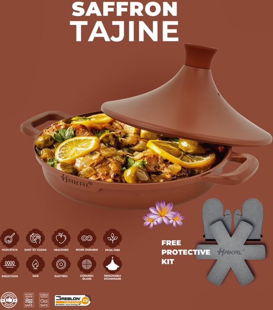 De plus, le tajine passe au lave-vaisselle, donc le nettoyage n'est jamais un problème! Pendant la cuisson, il suffit d'ajouter un peu d'eau, après quoi la vapeur s'écoule uniformément sur les ingrédients. Cette conception préserve non seulement le goût original et la valeur nutritionnelle des aliments, mais assure également une excellente rétention de la chaleur, gardant les aliments chauds plus longtemps. Le tajine antiadhésif peut être apporté directement de la cuisinière au four, puis à la table à manger. Le tajine est livré avec des gants de cuisine et un dessous de verre en feutre. Set de 3 Poêles à Frire Induction 18-20-24 cm Aluminium, Antiadhésif... Accessoires inclus : livré avec des gants de cuisine et un dessous de verre en feutre pour plus de commodité. DE LA CUISINE ET DU FOUR À LA TABLE À MANGER Spécialement conçu avec un grand fond de casserole rond, adapté à différents types de plaques de cuisson telles que les plaques électriques, gaz, induction, halogènes et vitrocéramiques. Cette forme unique aide à concentrer la vapeur et chauffe les aliments uniformément, réduisant ainsi la perte d'humidité. Tajine Pour Induction Et Four Cuisson Tajine Safran 30 Cm - Antiadhésif - Sans PFOA Plat Tajine Four Le revêtement triple couche antiadhésif sans PFOA assure une cuisson sans accrocs et un nettoyage facile. Il résiste à 260°C et passe de la cuisinière... Conservation de la chaleur : une excellente rétention de la chaleur garantit que les aliments restent chauds plus longtemps. Conservation optimale du goût : réduit la perte d'humidité et préserve le goût original et la valeur nutritionnelle des aliments. Design traditionnel : couvercle conique inspiré du tajine marocain traditionnel pour une répartition uniforme de la chaleur. Anti-adhésif et robuste : triple revêtement et couche intérieure en aluminium pressé de haute qualité pour une performance durable. Faitout Haut 32 cm, Fonte D'Aluminium avec Antiadhésif Teflon Vapeur efficace : la vapeur circule et coule uniformément sur les ingrédients, réduisant ainsi le besoin d'eau. RÉSISTANT À LA CHALEUR Qu'avez-vous un tajine quand vous ne pouvez pas le faire frire? Le tajine au safran résiste à la chaleur jusqu'à 500℉ (260℃). En comparaison, les gâteaux normaux sont déjà entièrement cuits à seulement 300℉ (150℃). La poêle est livrée avec un couvercle traditionnel en aluminium, idéal pour la cuisson juteuse et aromatique, la friture, la saute, la saisie, le ragoût ou la cuisson à la vapeur.
