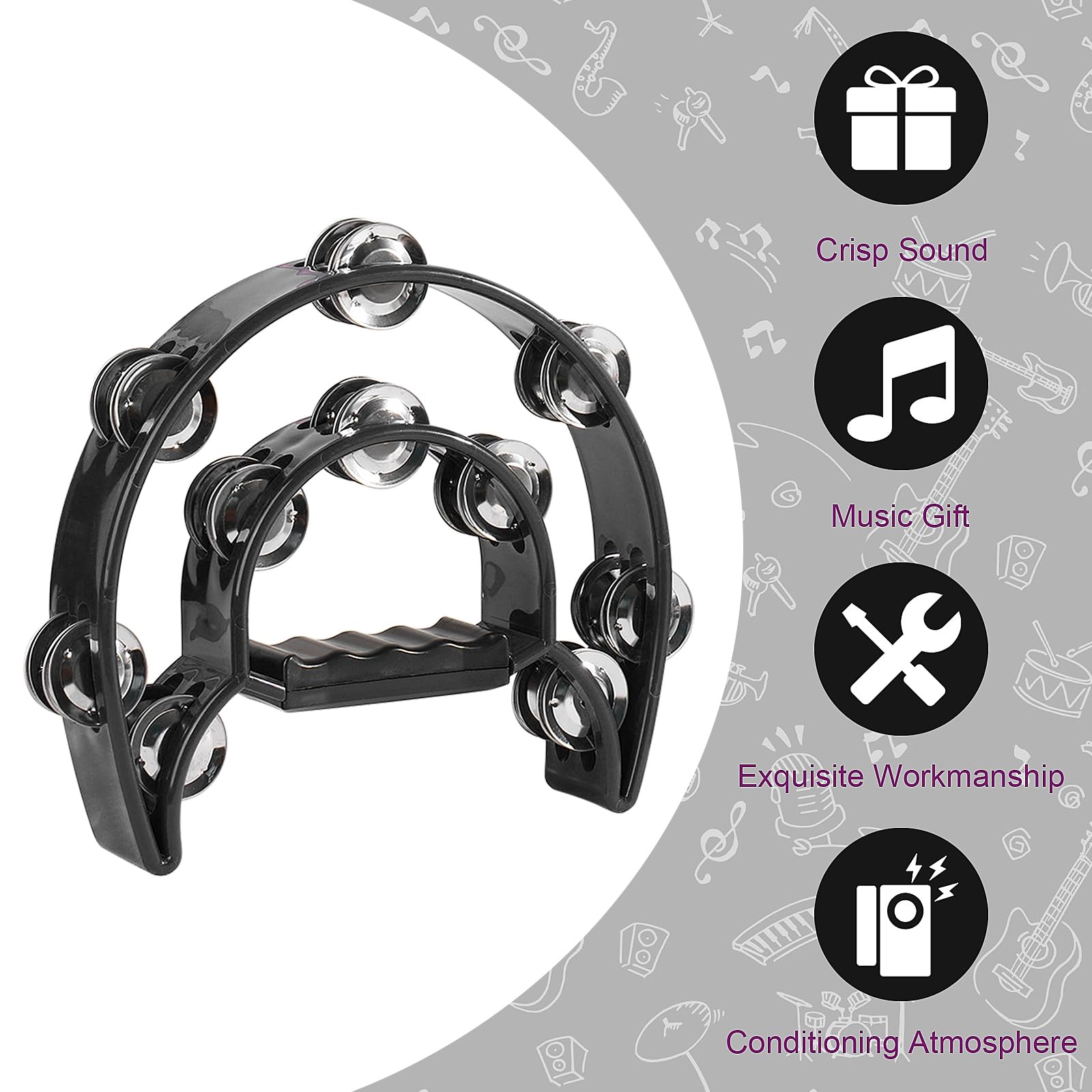 Yctze Tambourine à Main à Double Rangée - Instrument de Musique à Son mélodieux : double rangée de jingles en plastique et acier inoxydable de haute qualité. Tambourin Double Rangée 8 Pouces Musique Danse église Tambourin Double Rangée Demi-Lune GXGM - Pour Danse, Église, Enfants - Son Clair & Lumineux Instrument Percussion Danse église Tambourin 8 Pouces Jingles Double Rangée Facile à saisir : la poignée ergonomique du tambourin s'adapte parfaitement à vos doigts, facile à saisir, confortable à utiliser. Taille appropriée, facile à saisir, adaptée aux performances de fêtes musicales, etc. - Il peut créer des sons comme des vagues s'écrasant contre des rochers ou des vagues qui clapotent lentement sur une plage Tambourin Double couche en Grain de bois couleur café, cloche à main en forme de demi-lune pour fête de spectacle, Instrument de musique Portable · Produit... EXÉCUTION EXQUISE: Texture fine, lisse. Vendu par Musictools et livré par Fulfillment. musical : musical pour les amis, la famille et les enfants. Spécification:État : NeufType d'article : ClochetteMatériau : Plastique, MétalCouleur : Imitation Bois CouleurListe des colis:1 x clochette Obtenez-le dès le dimanche 26 mars. 1., Fabriqué en matériau de haute qualité et respectueux de l'environnement., 2., 20 paires de jingles à double rangée émettent des sons en secouant, offrant une excellente qualité sonore., 3., La poignée ergonomique s'adapte parfaitement à vos doigts pour une prise en main facile., 4., Exécution exquise, texture fine, lisse., 5., musical pour les amis, la famille et les enfants.