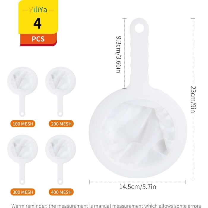 Scénarios D'Application : Les filtres alimentaires sont largement utilisés dans les cuisines domestiques, les restaurants, les cafés, les boulangeries et les bars. Avec Une Texture Précise : la surface lisse et la taille uniforme des pores garantissent la sécurité du tamis de cuisine fin adapté au contact direct avec les aliments Tamis Cuisine Lot De 3 Filtre à Tamis Fin Nylon,Tamis De Cuisine à Mailles Filtre 100 200 400 Mailles Dans le même temps, le filtre en maille de nylon convient à la filtration fine de boissons telles que le lait de soja, les jus, la confiture et les liquides tels que le lait et l'huile de cuisson. Alimentaire Filtre, Nylon Tamis Fin Avec Poignée 100 Mesh Jeu de 3 Tamis De Cuisine à Mailles Fines: Vous recevrez 3 Passoire Mailles Avecpoignée, la longueur du manche est d'environ 9 cm, les spécifications sont... Contenu Du Colis : Vous recevrez 3 filtres professionnels avec différentes tailles de mailles (100 mailles, 200 mailles, 400 mailles) pour répondre à différents besoins de filtrage. Facile À Saisir : la poignée de la passoire est fabriquée en matériau PP qui répond aux normes de sécurité alimentaire. Plus le nombre de mailles du filtre est grand, plus la précision de filtration est élevée et différents matériaux peuvent être traités séparément Plus le nombre de mailles du filtre est grand, plus la précision de filtration est élevée et différents matériaux peuvent être traités séparément Scénarios D'Application : Les filtres alimentaires sont largement utilisés dans les cuisines domestiques, les restaurants, les cafés, les boulangeries et les bars. Dans le même temps, le filtre à mailles est non toxique et inodore, robuste et durable, adopte une conception sans vis, éliminant le danger caché de la rouille et convient à une utilisation à long terme Dans le même temps, le filtre à mailles est non toxique et inodore, robuste et durable, adopte une conception sans vis, éliminant le danger caché de la rouille et convient à une utilisation à long terme Conception Réfléchie : filtre en nylon Le filtre en nylon ultra-fin est équipé d'une poignée antidérapante, qui est non seulement facile à utiliser, mais a également un bon effet d'isolation thermique, empêchant efficacement les brûlures.