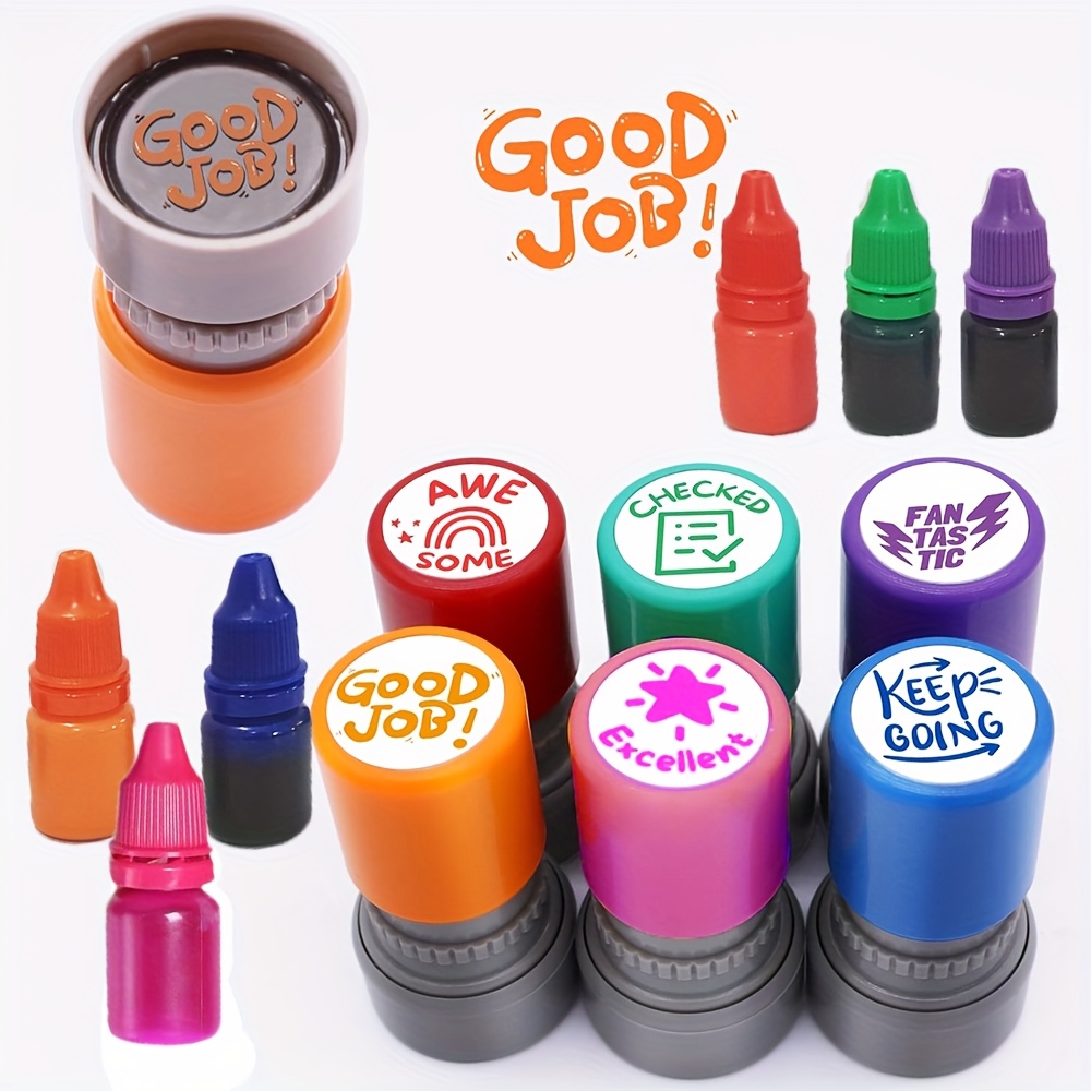 Convient pour les enseignants de maternelle et d'école, ainsi que pour les professionnels de l'éducation cherche à enrichir leurs méthodes d'enseignement Tampon Apprentissage Tampon De Récompense Pour Enseignant Tampon Auto-encreur Coffret De Tampon Enseignant Fabriqués à partir de composants sensibles à la lumière et de polypropylène, ces tampons de récompense pour enseignants offrent une impression claire en plusieurs couleurs, avec des motifs de dessins animés amusants qui attirent l'attention des élèves. Argent De Vecteur De Récompense De Tampon En Caoutchouc D'édition... Contenu du paquet : 1 tampon., 1 bloc photosensible. Remarque : Les mesures étant prises à la main, les tailles indiquées peuvent varier de 0 à 1 cm. Tapon de récopense pour enseignant photosensible pour les devoirs et... Composant : polypropylène ; métal. Convient pour les enseignants de maternelle et d'école, ainsi que pour les professionnels de l'éducation qui cherche à enrichir leurs méthodes d'enseignement. Fabriqué à partir de composants sensibles à la lumière et de polypropylène, ce tampon de récompense pour enseignant offre une impression claire en plusieurs couleurs, avec des motifs de dessins animés amusants qui attirent l'attention des élèves Tampon appréciation pour les corrections des enseignants pe Largement utilisé pour la récompense en classe, le classement des devoirs, la récompense de bon comportement, le marquage, l'évaluation et les activités interactives en classe, ces tampons aident les éducateurs à communiquer efficacement et à s'engager avec les élèves. Avec des encres rechargeables, ce tampon de récompense pour enseignant garantit une utilisation à long terme, ce qui en fait un outil essentiel dans la collection de fournitures scolaires de bureau de tout enseignant