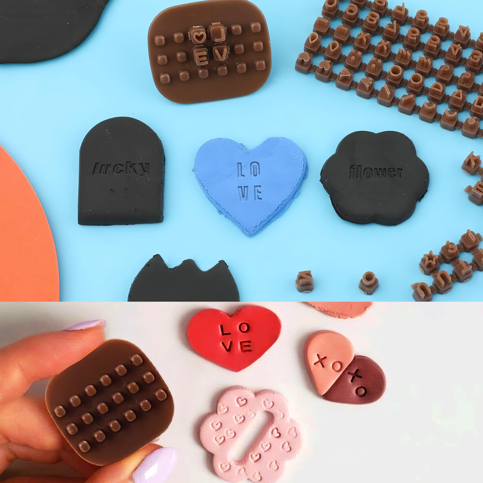 Tampons Sculpture 4mm Tampons Créatifs ABS Haute Température Lot De 172 Tampons Alphabet - Pour Décorer Biscuits, Argile Et Pâtisserie Tampons Argile Lettres Lettre Argile Set de tampons - Alphabet - halb und halb | CD-St-607 Facile à utiliser : il suffit d'appuyer sur le tampon dans votre argile humide pour des résultats instantanés de qualité professionnelle. Pas besoin de sculpter... Idéal pour la sculpture sur argile et la décoration de desserts, ils rendent également l'apprentissage des lettres et de l'orthographe amusant grâce à des jeux pratiques avec de la pâte ou de l'argile. Fabriquer plus intelligemment, pas plus difficile! Tampons en plastique durables - Fabriqués à partir de matériaux de haute qualité, ces tampons conservent une forme parfaite et des détails nets grâce à une utilisation répétée, livrer propre, des impressions précises de manière cohérente. Obtenez sans effort des résultats professionnels en les pressant dans de l'argile humide, éliminant le besoin de sculpture à la main avec un lettrage prêt à l'emploi de 4mm de profondeur. ESTAMPAGE SANS EFFORT - Obtenez des résultats professionnels instantanément en pressant ces tampons dans de l'argile humide. OUTIL DE SCULPTURE À LA MAIN IDÉAL - Ces tampons créent instantanément un lettrage parfait pour que vous puissiez vous concentrer sur la conception, pas de détails fastidieux. Ces tampons peuvent également aider les enfants à apprendre les lettres et l'orthographe grâce à des jeux pratiques avec de la pâte et de l'argile., . Description du produit Fabriqués en matériau ABS de qualité supérieure, ces tampons à biscuits réutilisables offrent des lettres, des chiffres et des symboles doubles - Parfaits pour personnaliser des projets de biscuits, de pâte à sucre, de pâte d'amande ou d'argile. Avec deux tailles (6,5 cm et 3,5 cm), ils sont parfaits pour des détails de gaufrage précis sur les petits biscuits...