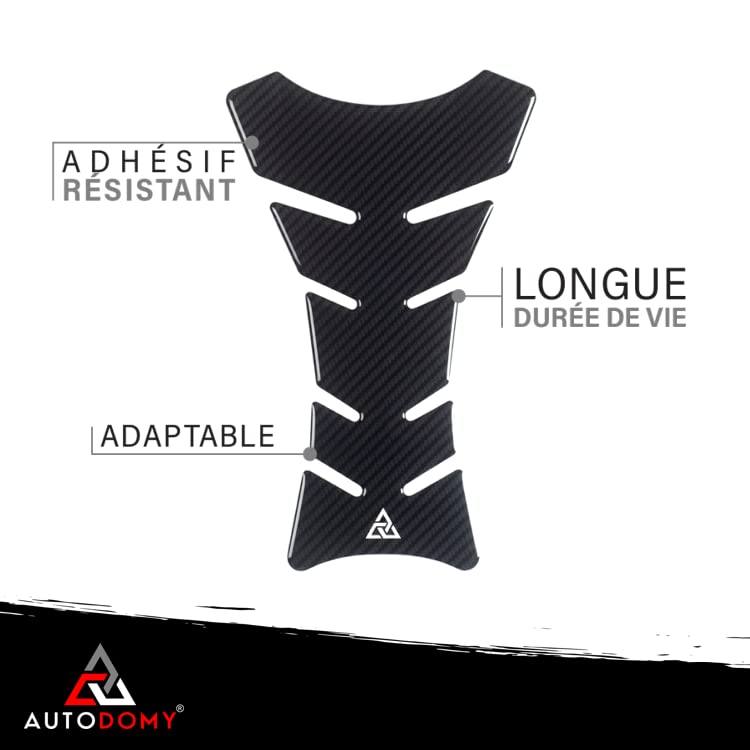 Tank Pad Moto Protection Réservoir Moto Autocollant - 20x13,4cm - Carbone - Universel Pour Toutes Motos Autocollant Carbone Protection autocollante pour réservoir d'essence de moto Pour YAMAHA YZF R1 R3 R6 R15 R25 R125 YZF-R1 YZFR3 YZF-R6 YZFR15 YZF-R25 YZFR25 Cette protection autocollante prévient les rayures et l'usure du réservoir et masque les rayures existantes, préservant ainsi l'esthétique de votre moto Protection Réservoir Moto Autodomy Motorcycle Tank Protection Black V1 20 X 12.5 Cm | Adhesive Tank Protection Tankpad Sport For Motorcycles Universal Tankpad Moto Universel Adhésif Fabriquée avec des matériaux de qualité supérieure, cette protection de réservoir de carburant pour moto allie résistance, durabilité et design. Avec ses dimensions universelles (20 x 14 cm), elle s’adapte parfaitement à la majorité des modèles de motos et s’installe en toute simplicité. HAUTE QUALITÉ: Les protections sont fabriquées en Europe par AUTODOMY, avec des matériaux certifiés. Elles résistent à toutes les conditions climatiques et... Elle protège efficacement contre les rayures causées par les clés, les fermetures éclair ou les frottements réguliers, tout en préservant l’aspect neuf de votre réservoir. PROTECTION DURABLE POUR VOTRE MOTO : Ce protege reservoir moto en vinyle protège efficacement le réservoir de carburant de votre moto contre les frottements, les rayures et l'usure, tout en maintenant la peinture en parfait état même dans des conditions difficiles. ADAPTABILITÉ UNIVERSELLE : Grâce à sa flexibilité, cette protection reservoir moto s'adapte facilement à presque tous les modèles de motos, offrant une installation rapide et un ajustement parfait à chaque réservoir de carburant. RÉSISTANCE AUX CONDITIONS CLIMATIQUES : Fabriqué avec des matériaux de haute qualité, cet autocollant de protection de réservoir de moto est conçu pour résister à l'eau, aux rayons UV et aux températures extrêmes, assurant une durabilité maximale.