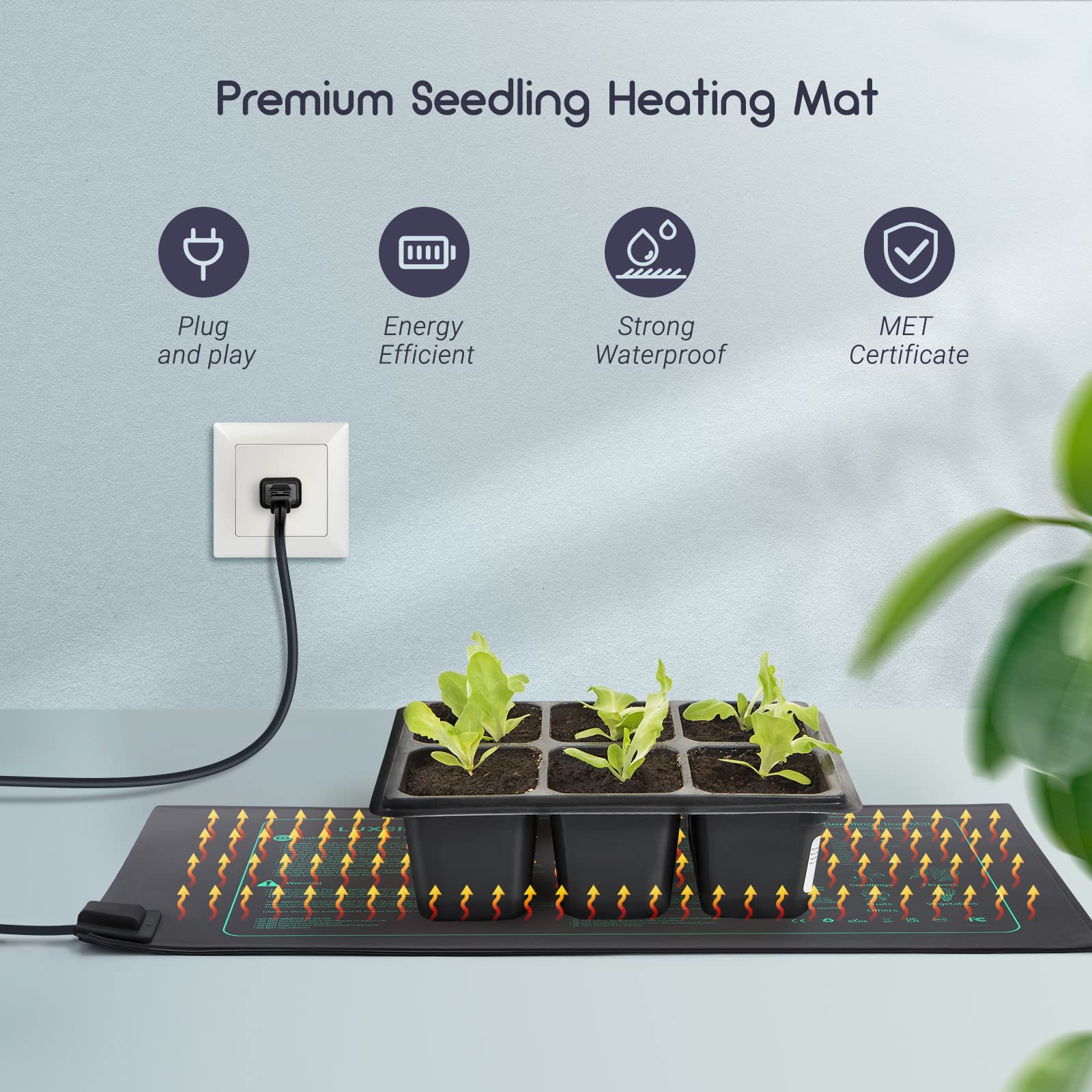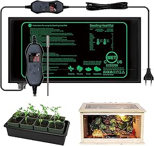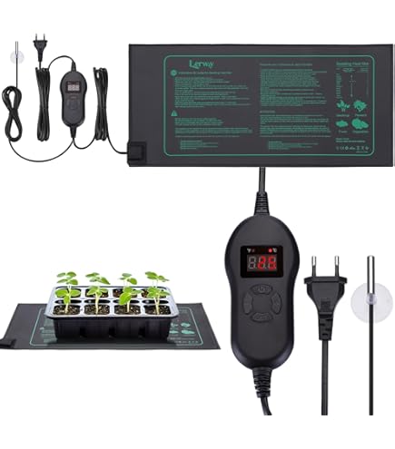 Tapis Chauffant Plantes 50W Avec Thermostat Pour Semis Tapis Chauffant Semis Plantes Tapis chauffant pour semis ATYHAO - 20 x 10 pouces - PVC souple Tapis chauffant pour semis MXZZAND - 20x10 pouces - Thermostat... Dans les 20 à 30 minutes suivant la mise sous tension, il peut élever la température au niveau des racines de 10 à 20°C au-dessus de la température ambiante, augmentant ainsi efficacement le taux de germination jusqu'à 40% 🌱【Taille Idéale】Avec des dimensions de 21 x 10 pouces, ce coussin chauffant pour plantes a une taille idéale pour être placé parfaitement sous les plateaux de culture, offrant une surface de contact maximale et un rendement thermique optimal. Qu'il soit placé sur le rebord d'une fenêtre, sur des étagères de serre ou au fond d'un terrarium, il s'installe parfaitement, sans prendre d'espace supplémentaire, et fournit une chaleur complète La chaleur est uniformément répartie et l'efficacité thermique est élevée. 🌱【Durable et Étanche】Ce tapis chauffant hydroponique est fabriqué en PVC de haute qualité, ignifuge et résistant aux perforations, dont la surface est recouverte de silicone, ce qui le rend durable. 🌱【Applications Diverses】Ce coussin chauffant pour semis est équipé d'un affichage numérique pour une surveillance facile de la température. Il convient également pour l'élevage de poissons ornementaux en terrarium, le brassage de bière et plus encore , 🌱【Remarque】1., Ne plongez pas le tapis chauffant dans l'eau., 2., N'utilisez pas le tapis chauffant sur des surfaces rugueuses, abrasives ou tranchantes., 3., Ne l'utilisez pas pour chauffer le corps humain., 4., Ne pliez pas le tapis chauffant Tapis Chauffant pour Semis,25cm52.5cm 50W Tapis Chauffant pour Plantes...