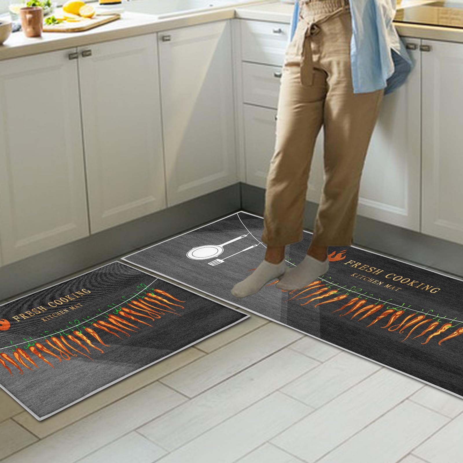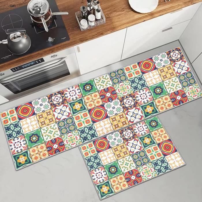 HZVRTN Lot de 2 tapis de cuisine lavables et antidérapants Absorption rapide et facile à entretenir : la surface des tapis de cuisine est conçue pour absorber rapidement les déversements et les saletés, gardant votre sol de cuisine propre et sec. Tapis Cuisine Anti-fatigue Antidérapant Lavable Lot De 2 s Et Lavables Anti Tapis De Cuisine Antidérapant Confortable : gardez vos pieds reposés et confortables tout en étant debout sur ce tapis de cuisine ergonomique rembourré anti-fatigue. Ne vous inquiétez plus de glisser ou de rayer le sol. Nos tapis de sol pour évier de cuisine disposent d'un dos en polyester doux empêchant le tapis de bouger ou de rayer les sols, parfait pour les maisons avec des animaux domestiques ou des enfants JEFFEL Lot de 2 Tapis de Cuisine antidérapants et lavables, Anti... L'ensemble de tapis de cuisine imperméables offre une très grande empreinte dans les toilettes, cuisines, bureaux, sols, éviers, espaces intérieurs ou extérieurs. Le tapis de cuisine n'a généralement besoin d'être nettoyé qu'avec un chiffon humide, et lorsqu'un nettoyage en profondeur est nécessaire, il suffit de le mettre dans la machine à laver et de le sécher au sèche-linge à basse température pour un nettoyage sans tracas. Assurez-vous que votre sol est propre et sec avant utilisation. Qu'il s'agisse d'un sol en bois ou d'un carrelage, humide ou sec, vous n'avez pas besoin de vous soucier du problème antidérapant lorsque vous vous tenez dessus. Ensemble de tapis de cuisine polyvalent : nos tapis confortables sont adaptés à toutes les surfaces (bois, céramique, stratifié, marbre, etc., ). Durable et antidérapant : le dessous du tapis de sol est fabriqué en particules de plastique antidérapantes, ce tapis de couloir antidérapant robuste avec envers en caoutchouc permet aux tapis de cuisine de rester en place.