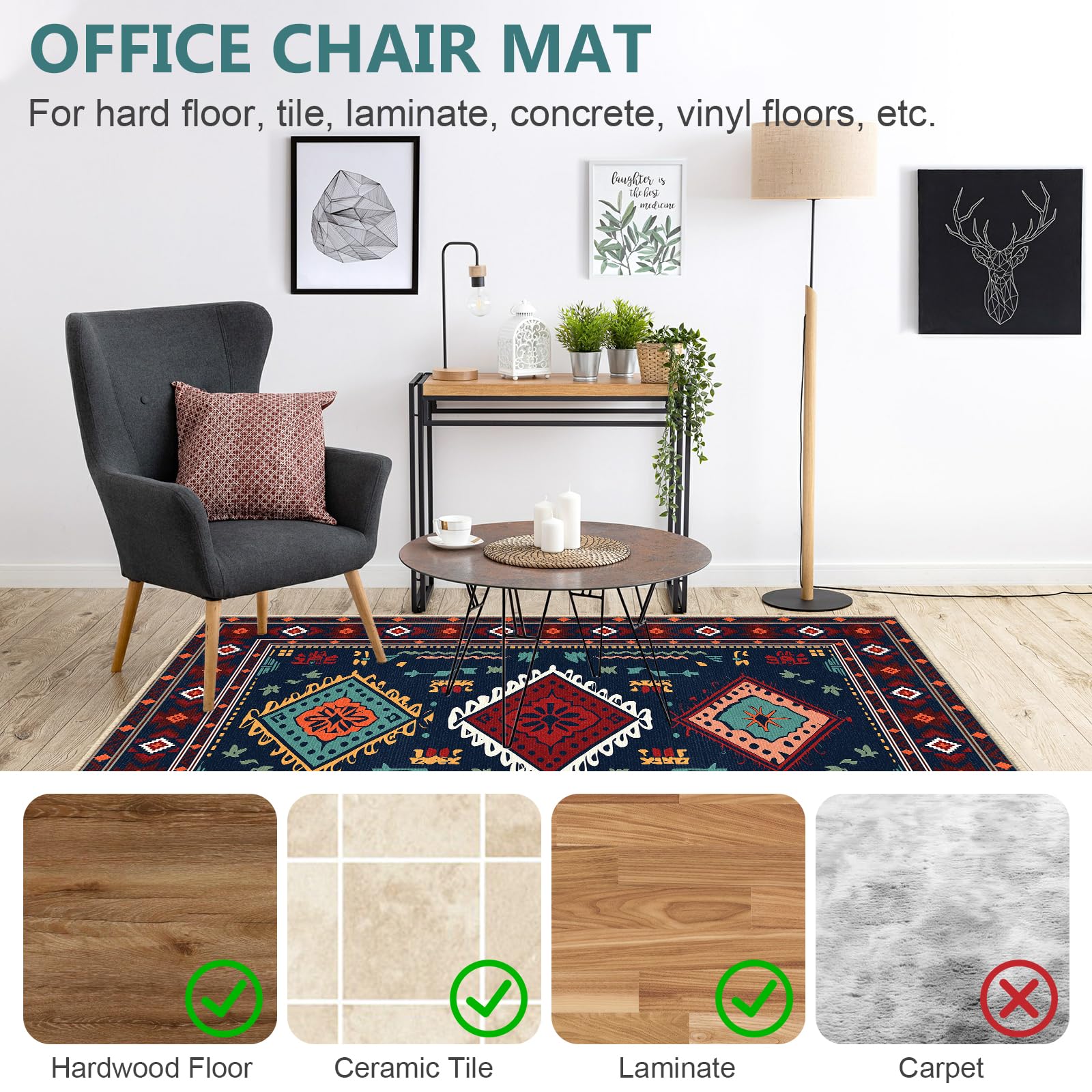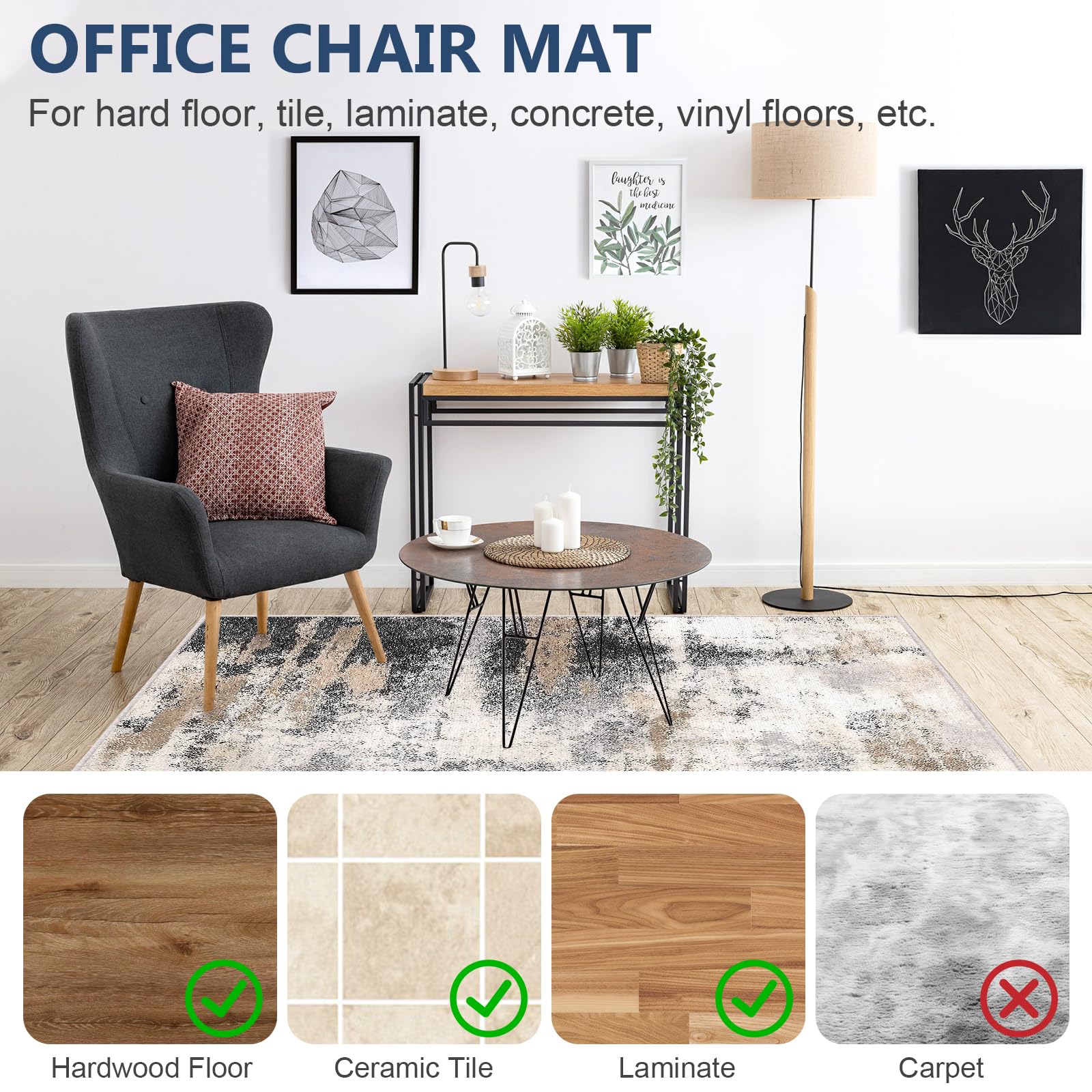 [Facile à utiliser, aucun résidu] Le coussin de bureau peut être facilement déplié, déchirer le film sur le dos et le placer sur un sol propre. [Matériau de haute qualité] Ce tapis de sol en bois franc est composé à 100% de fibres de polyester, sans BPA et sans phtalates, sûr et non toxique, sans fissures, sans boucles, au toucher doux, au fond antidérapant, offrant un environnement de bureau de haute qualité. Protection Sol Parquet Carrelage Lurowo , Tapis Chaise De Bureau En PVC Avec Design Antidérapant, Tapis De Sol Pour Sols Durs, Stratifié Et Carrelage, 90x120 Cm (Noir Tapis De Protection De Sol Ce tapis de chaise Lurowo 90x120cm protège parfaitement les sols durs (carrelage, bois, vinyle...). Antidérapant, épaisseur 0,3cm, bords enveloppés. Facile à... [Conception antidérapante] Adoptant la technologie d'adsorption sous vide, le fond est antidérapant, il s'adapte parfaitement au sol, a une bonne stabilité et est plat autour. Étant donné que le tapis sera plié et emballé pendant le transport, veuillez le déplier et ajouter du poids après réception de la marchandise. Tapis de sol chambre d'enfant La taille parfaite (120 * 90cm) est un tapis de sol qui peut être assorti à n'importe quelle décoration de la maison. [Protection efficace du sol] Les tapis de sol peuvent empêcher l'abrasion des chaises ou des tables et en même temps protéger le bois franc, les carreaux de céramique, les stratifiés, le linoléum et d'autres surfaces de sol dur. Il s'aplatira progressivement après quelques heures. Remarque: étant donné que le produit est dans un emballage plié, il y aura de légers plis après réception de la marchandise, ne vous inquiétez pas, il sera plat après quelques jours. Facile à nettoyer Le produit est fait de matériaux résistants à la saleté et est facile à nettoyer. Matériau de haute qualité] Ce tapis de sol en bois franc est composé à 100% de fibres de polyester, sans BPA et sans phtalates, sûr et non toxique... Notez qu'il n'est pas recommandé pour les tapis. [Multifonctionnalité] Le tapis de chaise antidérapant en PVC auto-adhésif convient au bureau, à la chambre à coucher, à la salle de bain et au salon, etc. Retirez la feuille de plastique à l'arrière et placez-la sur le sol. Tapis Roulant Chaise Tapis De Bureau Lurowo 90x120cm - Protection Sol Antidérapant Protection Sol Chaise De Bureau