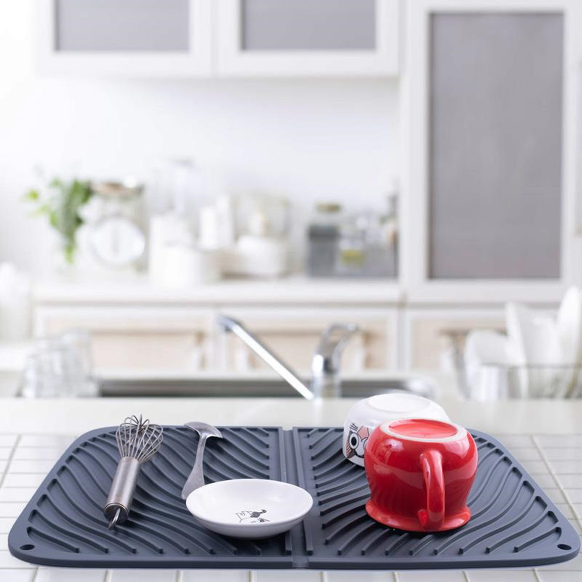 Les taches d'eau qui apparaissent pendant l'utilisation peuvent être facilement enlevées en rinçant brièvement ou en essuyant avec un chiffon humide. Silicone de qualité supérieure : ce tapis de séchage de vaisselle est fabriqué en silicone sans BPA, indéformable et résistant aux déchirures. Tapis évier Bord Surélevé Silicone Tapis De Séchage Pliable Extra Large En Silicone Absorbant Pour Plans Tapis Sushi Tapis De Séchage Pour Plan De Travail De Cuisine 45,7 X 61 Cm Peut Être... Il peut être utilisé pour la nourriture et est également excellent pour égoutter les fruits et légumes ou comme tapis imperméable pour animaux de compagnie. Caractéristiques : Ce tapis en silicone de 101 x 71 cm dispose d'un bord surélevé qui retient efficacement l'eau et les déversements. Design à séchage rapide avec rainures surélevées : le tapis d'égouttement en silicone est équipé de rainures surélevées qui favorisent la circulation de l'air, accélèrent l'évaporation de l'eau et permettent à la vaisselle de s'égoutter plus rapidement. Sa surface texturée capture efficacement la saleté, protège les pattes et empêche les rayures, ce qui permet une utilisation à long terme dans les cuisines et les zones des animaux domestiques. Créez un environnement de vie confortable pour votre animal de compagnie. La couleur neutre s'adapte à une variété de styles de cuisine et offre à la fois un attrait esthétique et des performances fonctionnelles. Grâce à sa texture souple et douce, il peut être facilement enroulé ou plié, ce qui le rend idéal pour les cuisines. Il peut même contenir un panier entier à la fois, ce qui en fait le choix parfait pour les familles ayant des besoins quotidiens élevés de lave-vaisselle. En plus de sa fonction protectrice, le tapis plan de travail apporte une touche de décoration à votre cuisine, avec des motifs et des couleurs variés. Découvrez sur une sélection de tapis plan de travail de qualité pour une cuisine à la fois pratique et esthétique Nettoyage et rangement sans effort : le tapis de plan de travail en silicone est facile à nettoyer. Il peut également être utilisé comme tapis de litière pour récupérer la litière et garder votre sol exempt de sable. Caractéristiques techniques : Matériel: silicone Dimensions : 101,6 cm x 71,12 cm (40 x 28) Kalolary Tapis égouttoir à vaisselle en silicone pour