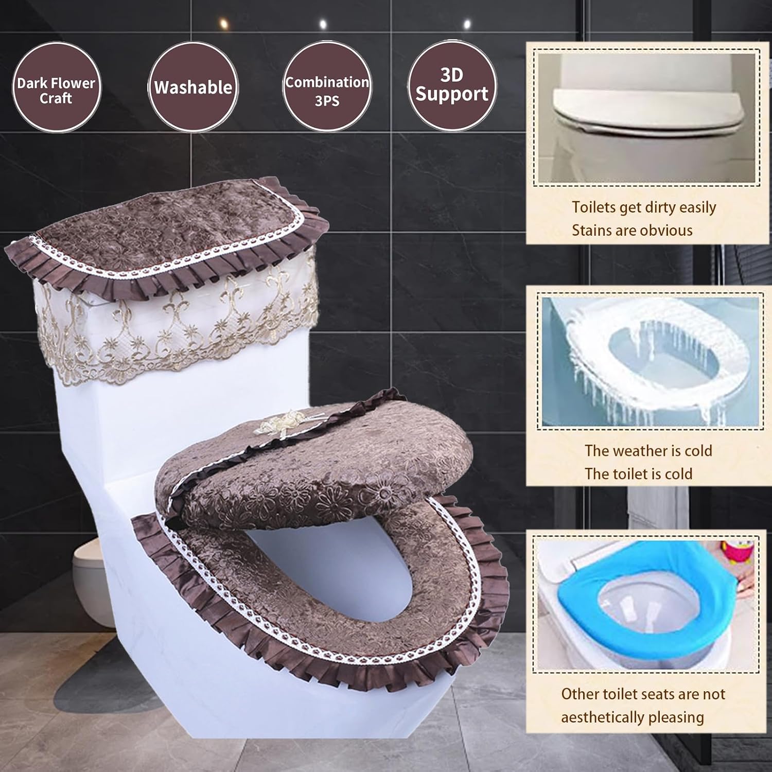 Siège de toilette universel, tapis épais, doux et ... – Grandado HOUSSE DE SIÈGE Toilette Floue Tapis Bain Absorbant Costume Trois... Décoration Salle De Bain Tapis De Siège De Toilette Universel, Coussin Chauffant For Toilettes, Broderie Lavable, Couverture De Réservoir Avec Sacs De Rangement, Protection De Salle De Bains En Dentelle Imprimée ( Color : Pat Lot Housses WC Motif Floral Fabriquées dans un matériau chaud et doux, ces housses offrent un confort supplémentaire lors de l'utilisation des toilettes. La conception à fermeture éclair permet une installation et un retrait faciles. Housses D abattants Wc Et De Réservoir - Joyin Housse Siège Toilette... Le magnifique motif floral brodé en dentelle beige ajoute une touche élégante à la décoration de votre salle de bain. Compatibles avec la plupart des toilettes standard, ces housses sont indispensables for toute salle de bain. Lavable et réutilisable : Lavable à la main et en machine, réutilisable plusieurs fois, doux et chaud, robuste et durable. Comprend 3 pièces/ensemble : housse de couvercle de toilette, housse de réservoir de toilette et coussinets de protection de siège de toilette