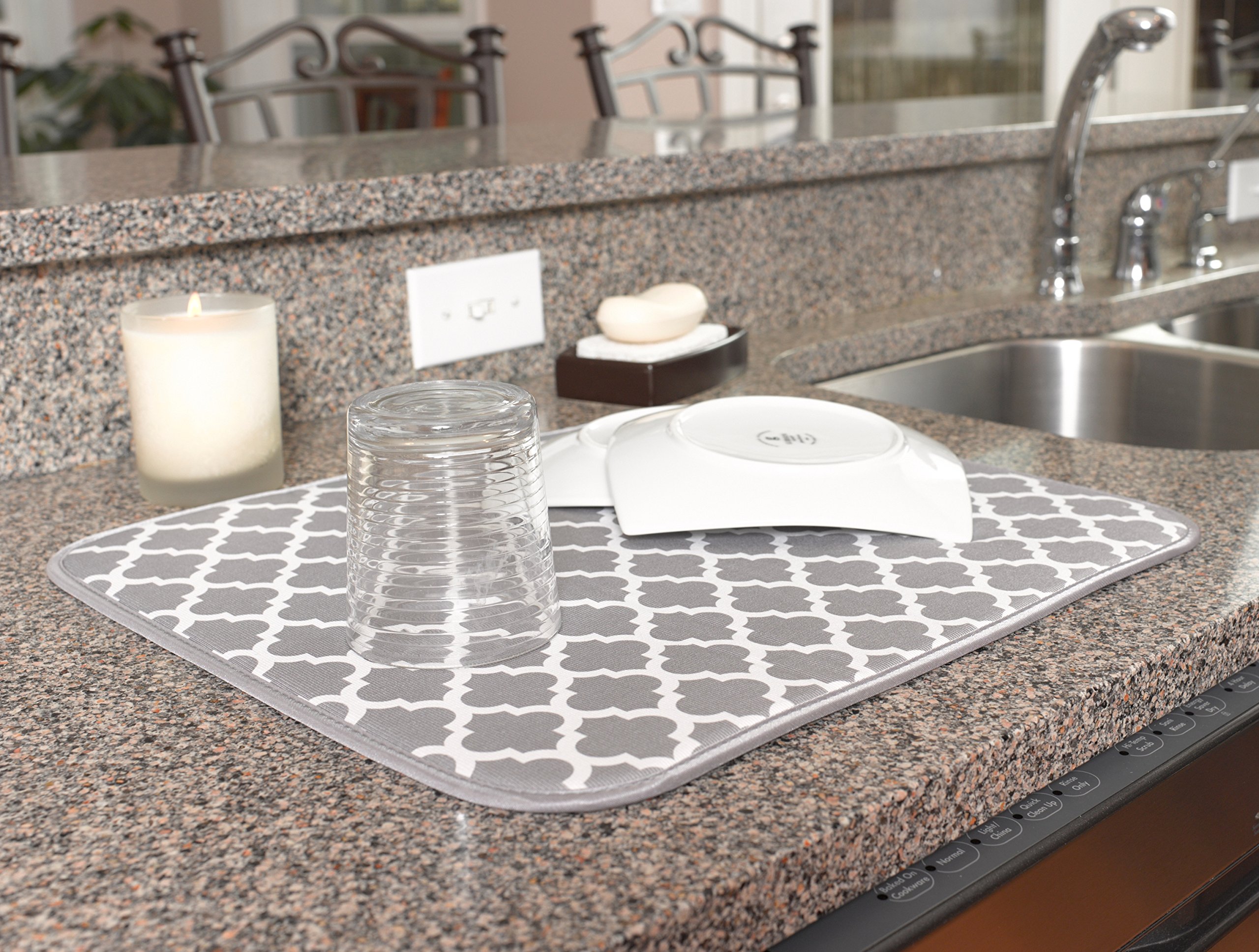 Le tapis de séchage pour plan de travail de cuisine est idéal pour un usage familial, les assiettes, les bols et les ustensiles et lorsqu’un espace de séchage supplémentaire est nécessaire. Lot de 2 tapis mousse protège évier DécorSoft Gris Béton - 26x31cm... développe des solutions innovantes pour les besoins du quotidien. Le tapis de séchage S&T INC. Tapis Egouttoir Vaisselle 5five - Tapis De Vaisselle Microfibre 32x44,5cm Gris - Maison Tapis D'égouttage Microfibre L'entretien du tapis d'égouttage pour plan de travail de cuisine est facile : il suffit de le laver en machine à l'eau froide avec un savon liquide et ensuite de le passer au sèche-linge à basse température. Le tapis d'égouttage S&T INC. Lorsqu'il n'est pas utilisé, le tapis de séchage pour vaisselle se replie facilement pour un rangement pratique dans le tiroir de l'armoire de cuisine. en microfibre de 40,6 x 45,7 cm ; le tapis de cuisine pour plan de travail absorbe jusqu'à 16 fois son poids en eau pour garder votre plan de travail sec, contrairement à un tapis de séchage en silicone. Le tapis de séchage pour plan de travail de cuisine protège les surfaces des rayures et des éraflures lorsqu'il est placé sous les ustensiles de cuisine ; les tapis de séchage polyvalents peuvent être utilisés sous un mixeur ou blender. Ce processus donne un tapis très fonctionnel et incroyablement durable, utilisation après utilisation, lavage après lavage. est parfait pour une utilisation sous un égouttoir à vaisselle pour absorber les gouttes, ou vous pouvez placer des casseroles, des poêles, de la vaisselle et de la verrerie directement sur le tapis. Tapis Cuisine Devant Evier Antidérapant Gris 2 Pièces 40x120cm... pour plan de travail de cuisine est la nouvelle solution à la tradition séculaire de placer des torchons sur le plan de travail lors du lavage à la main des casseroles et poêles, couteaux, plats et verres. Les tapis d'égouttages pour plan de travail de cuisine sont réutilisables, lavables en machine et faciles à ranger pour l'organisation de la cuisine ; la construction durable ne s'écaille pas et ne se casse pas comme un tapis de séchage en pierre. Escapades d'hiver ! Ens. de draps imprimés en microfibre - Oiseaux d