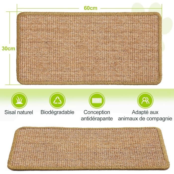 🐾PLUS GRANDS & FLEXIBLE: Ce set de tapis à griffer comprend3 tailles (60x30cm, 50x25cm, 40x20cm) pour chats de toutes corpulences. Tapis Griffoir Sisal Grattoir Chat Tapis Gratter pour Chats Résistant L'odeur naturelle des fibres végétales attire naturellement les chats. Griffoir Pour Chat Tapis Mural, En Sisal Naturel,Poteau Grattoir Chat Mode d'emploi Pour adultes uniquement. Parfait pour les foyers multi-chats. Griffoir - Chat - Sisal Naturel - 60x40 cm - Antidérapant - Protège... La couleur et texture naturelles du sisal s'intègrent parfaitement à la plupart desstyles de décoration – à la fois utile et élégant. 🐾NATUREL & SÛRETÉ: Grattoir chat en fibres de sisal naturelles, sans produits chimiques nocifs. PLUS GRANDS & FLEXIBLE: Ce set de tapis à griffer comprend3 tailles (60x30cm, 50x25cm, 40x20cm) pour chats de toutes corpulences. Placement flexible partout (canapé, fenêtre, angle…). Parfait pour les foyers multi-chats.SISAL NATUREL & DURABLE: Tissé en fibre de sisal naturelle, résistant à l'usure. Texture rugueuse attractive pour les chats, entretient les griffes. Résiste aux... La bande velcro adhère solidement à de nombreuses surfaces comme les accoudoirs de canapé, les meubles, les portes et les murs que vous souhaitez protéger, pour une utilisation en toute tranquillité. Résiste aux griffures intenses, ne s'effrite pas. Sécuritaire pour les chatons et les chattes gestantes. Description du produit Lot de 3 Tapis Griffoir pour Chat 🐾 Lot de 3 Tapis Griffoir pour Chat - Le Bonheur Naturel de Votre Félin 🐾 🔍 Caractéristiques du Produit : 3 tailles pratiques : 60x30cm + 50x25cm + 40x20cm Matériau : Fibres de sisal naturelles de haute qualité Poids : 700g (léger mais stable) Spécial : Dos auto-adhésif avec bande velcro ⭐ Avantages Principaux : ✅ Plaisir de griffer naturel : La texture rugueuse du tapis griffoir chat en sisal attire magiquement les chats ✅ Solution 3-en-1 : Combine griffoir chat et tapis chat en un seul ensemble ✅ Installation facile : En tant que griffoir auto-adhésif, se fixe facilement sur canapé, mur ou meuble ✅ Protection optimale : Empêche les griffures sur meubles, murs et sols ✅ Durable : Résiste aux griffures intenses et ne s'effrite pas 📌 Mode d'Emploi : Choisissez l'emplacement idéal pour votre griffoir pour chat (près de l'endroit préféré de votre chat) Nettoyez la surface avant d'appliquer le tapis griffoir chat Retirez le film protecteur et appuyez fermement le tapis 🎁 Cadeau parfait pour les propriétaires de chats - pratique, utile et respectueux des félins ! 🐾PRATIQUE ET ESTHÉTIQUE: Offre un griffoir dédié qui détourne efficacement leur comportement de griffade, protégeant ainsi canapés, rideaux, murs etc.