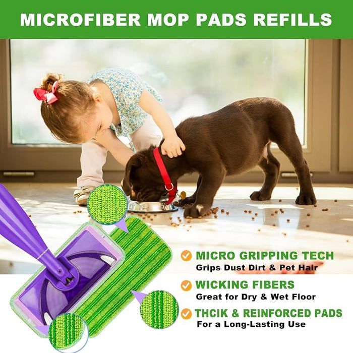 JEHONN Balai à franges compatible avec les tampons Swiffer, kit de Nettoyage Sec Humide Lot De 6 Tapons Réutilisables Pour Balai Swiffer WetJet - Recharges WetJet - Tapons De Accessoire Nettoyage Tampons de recharge réutilisables de haute qualité : ce produit contient 6 tampons de recharge réutilisables pour balai à jet humide Swiffer, chacun avec une taille de 30 x 14 cm, compatible avec Swiffer Wet Jet et tous les balais en microfibre de 25,4 cm, 28,9 cm, 30,5 cm. 6 serpillères peuvent totalement répondre aux besoins de... DIRT MAGNET: Le couvercle d'essuie-glace moelleux élimine la saleté et la poussière sans bavures. Lot de 6 serpillères réutilisables pour balai Swiffer WetJet - Recharges WetJet - Utilisation... ÉCONOMISEZ SUR VOTRE COMPTE ET L'ENVIRONNEMENT : Ces housses réutilisables sont simplement lavées en machine. 2 EN 1 : La housse de vadrouille extra absorbante convient au nettoyage sec et humide.