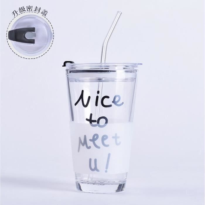 Beau design : lignes claires et précises, facile à saisir le volume de l'eau, une variété de motifs de dessin animé, très approprié pour les bébés Tasse étanche Micro-ondes Tasse à Lait En Verre Pour Enfants - Tasse à Mesurer Pour Tout-petits - Tasse En Verre Transparent Avec Paille Et Couvercle En Silicone Pour Micro-ondes, Lait, Jus, Glacé, Thé, Café, 300 Tasse Poignée Couvercle étanche C'est une tasse adaptée aux bébés. Tasse à lait pour enfants : convient aux liquides chauds ou froids : résistante de -20 à 150 degrés, antidéflagrante, elle peut être chauffée directement au micro-ondes (attention : retirez le couvercle avant de la mettre au micro-ondes) ou au réfrigérateur, son utilisation est sûre et fiable Caractéristiques : Matériau : verre trempé., Dimensions : 10,9 x 8,9 cm., Capacité : 350 ml., Contenance : 297,7 g. Contenu de la livraison : une paille, un verre et un couvercle Mode d'emploi : Il peut être nettoyé avec de l'eau, s'il y a des taches, il peut être nettoyé avec du citron ou du vinaigre, puis lavé à l'eau et séché. Tasse À Eau Transparente Avec Paille - Gobelet Grande Capacité Avec... Peuvent être utilisés comme tasses ordinaires, tasses à thé, etc. Le verre est transparent et ne contient pas de substances nocives. Matériau du verre : le matériau en verre est facile à nettoyer et a moins d'impuretés, le corps de la bouteille est transparent, résistant aux hautes températures, aux explosions et aux chutes, facteur de sécurité élevé, et ne contient pas de substances nocives. ZME06071-Tasse à café 350ml. verre à lait Portable. couvercle en La paille en silicone est douce et n'irrite pas les gencives. Le liquide ne fuira pas lorsqu'il est incliné et a un certain effet protecteur