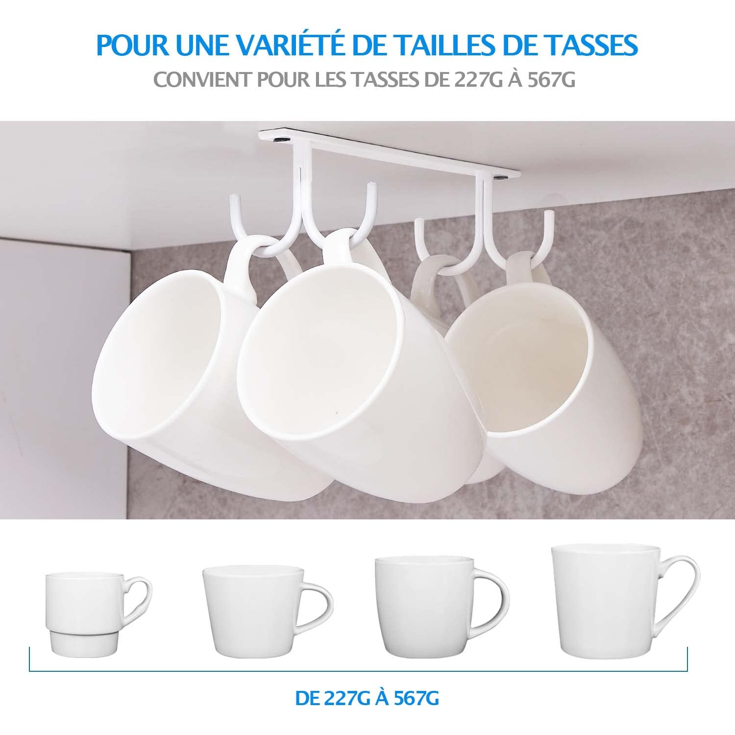 Autres accessoires de décoration Mendler Porte-tasses HWC-D13, étagère Support Tasse A Cafe Tasses Cafe Lot De 2 étagères Suspendues VINCOURNA Avec 10 Crochets Réglables - Rangement Tasses, Cuisine, Salon, 18kg De Charge étagère Murale Cuisine Accessoire Bar Café économie Espace Vis auto-adhésives invisibles sans trace et sans perçage, résistent à... Installation facile : Installez facilement ces accroches tasses sous les armoires ou étagères grâce à un système adhésif avec vis, qui fixe solidement le crochet et évite tout étirement dû au poids des mugs, sans nécessiter de perçage. Fixation Caresens Percer, Vis Adhésives,Crochets Transparents,Crochets... Idéal pour tous les environnements : Que ce soit dans un restaurant, un café, un bar ou votre propre cuisine, ce rangement tasse placard s’adapte parfaitement à tous les besoins de stockage, ajoutant à la fois fonctionnalité et style. Rangement polyvalent : Ces supports tasses à café suspendus ne se limitent pas seulement aux tasses, mais peuvent également être utilisés pour accrocher spatules, ouvre-boîtes, ciseaux, torchons à vaisselle, et bien plus, optimisant l’ordre dans votre cuisine.