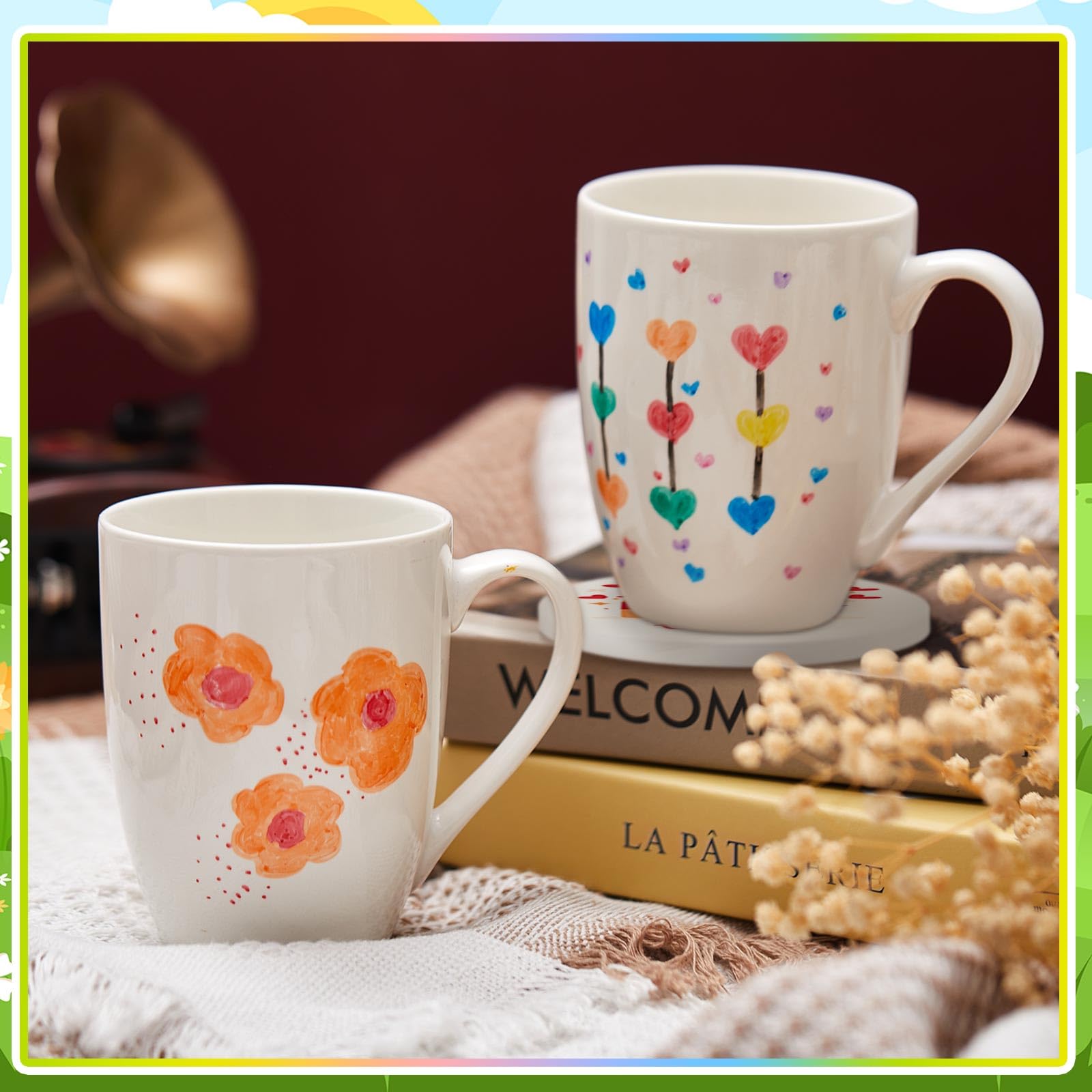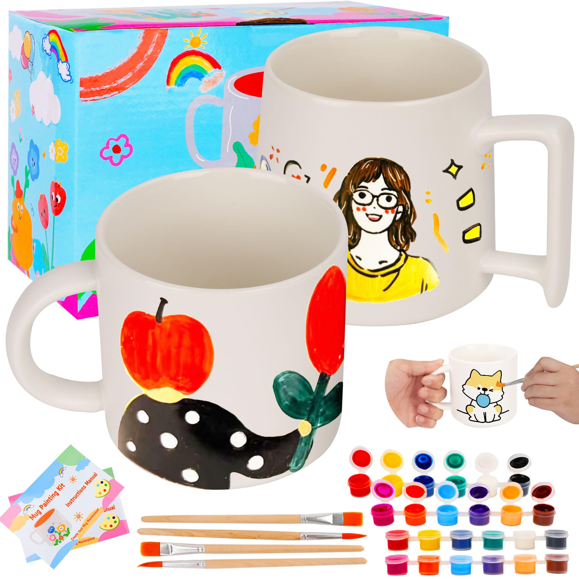 Créez un moment de calme, de concentration et de plaisir artistique seul ou en groupe. Peinture Sur Céramique Diy Vuxava Kit Tasses à Peindre - Set Céramique DIY Avec Couleurs Et Kit Peinture Céramique DIY Découvrez notre magnifique kit de peinture sur céramique Vuxava, comprenant trois tasses blanches à personnaliser selon vos envies créatives. Dégustez ensuite votre boisson préférée dans un mug unique et coloré ! Activité Relaxante Pour Deux Idéale pour une soirée créative ou un moment complice, le kit Paintables est parfait pour passer du temps de qualité avec votre partenaire. Éteignez vos écrans, détendez-vous et laissez vos mains exprimer votre créativité Laissez libre cours à votre imagination et créez des tasses personnalisées qui rendront vos moments de boisson chaude encore plus spéciaux. 🖌️ Liberté artistique sur votre mug Personnalisez vos tasses à votre goût avec des motifs, prénoms ou messages originaux. Tasses,Tasse à café dessin animé,tasses blanches créatives japonaises en céramique,chat Tazas... C'est une excellente idée cadeau pour les amateurs d'artisanat et de loisirs créatifs, parfaite pour une activité en famille ou entre amis. Ce set artistique complet est l'activité parfaite pour exprimer votre créativité et créer des pièces uniques qui égayeront vos moments de pause. Le design à grande anse offre une prise en main facile – idéal pour les projets de personnalisation en famille. Close Up De Différents Pinceaux Utilisés, Des Crayons De Couleur Stylos Et Marqueurs De Couleur Bleu Sur Les Tasses Sur La Table Et Fond Beige 135202110 Le kit inclut tout le nécessaire pour débuter : des tasses en céramique de qualité, des peintures aux couleurs vibrantes et des pinceaux adaptés. 🔥 Fixation facile au four Laissez sécher à l’air libre, puis passez les tasses au four à 160 °C pendant 30 min.