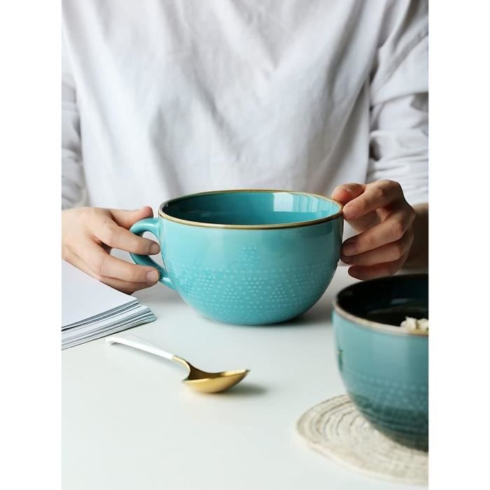 Idéal Soupe Et Céréales Tasses à Soupe Tasses Avec Poignée, Petite Tasse De Soupe En Céramique, Bol à Petit-déjeuner Avec Poignée, Café, Dessert, Micro-ondes Et Résistant Au Four.-bleu-250ml 9oz (Color : Blu Bol Couleur Bleue Design Ergonomique Runde Form Farbe benutzer definierte Keramik Suppe Schüssel mit Löffel Alibaba.c Tasses à soupe avec poignées, tasses à bouillon en céramique, bol à soupe pour micro-ondes, tasse à soupe, bol de petit déjeuner, vert - 12,7 x 12,7 x 8,9 cm... Sans plomb et non toxique. Passe facilement du micro-ondes à la table. Vous pouvez facilement le laver à la main ou le mettre au lave-vaisselle. Four à micro-ondes, lave-vaisselle, armoire de désinfection peut être utilisé en toute confiance Les matériaux professionnels rendent vos bols à soupe plus sûrs à utiliser. Matériau : céramique Service : nous ferons de notre mieux pour contrôler la qualité du produit. S'il y a un problème avec le produit que vous recevez, veuillez nous contacter et nous traiterons le problème pour vous dès que possible. Sistea Tasse à soupe pour icro-ondes 565 l