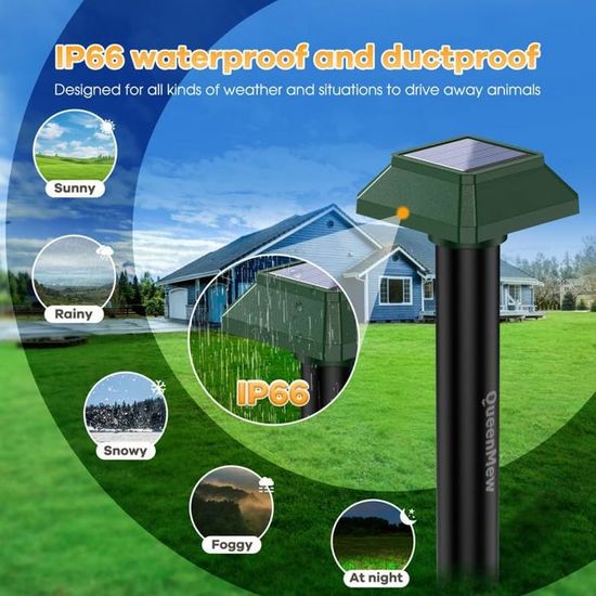Il peut être utilisé après l'avoir branché. 🚫🐭 【PUISSANT RÉPULSIF TAUPE】 Le plus récent Ultrason Taupe 2024 utilise la technologie la plus avancée pour générer des impulsions d'ondes sonores d'environ 400 Hz (son bourdonnement) toutes les 20 secondes, qui pénètrent dans le sol et rendent les taupes, campagnols et autres rongeurs mal à l'aise. Anti Taupe 700 M² Ultrason Rat Ultrason 4-Pack, Repulsif Taupe Solaire Piege A Taupe Pour Anti Taupe Ultrason Pour Campagnol Gaufre Serpent 2 Paquets Solaire Repulsif Taupe - Répulsif Serpent Ultrason - Anti... bruit irritant pour obtenir l'effet 🐹Avez-vous des problèmes avec les gaufres, les campagnols et les taupes qui détruisent votre pelouse et votre jardin ?📢Bonne nouvelle ! 📦 LE FORFAIT COMPREND :4 x Repulsif Taupe Solaire1 x Manuel d'utilisation 🚫🐿️【ZONE DE COUVERTURE LARGE DE 700 M²】 Le Repulsif Chat Exterieur fonctionne selon un motif circulaire et le son pénètre environ 96 pieds de diamètre dans toutes les directions. Il dispose d’une batterie de grande capacité pour stocker automatiquement l’électricité. 💯👼Caractéristiques de nos produits :1️⃣ Impulsions d'ondes sonores haute fréquence de 700 Hz, repoussent efficacement les rats2️⃣ Batterie solaire intégrée de grande capacité, longue durée de vie de la batterie, peut être utilisée les jours de pluie et la nuit3️⃣ 7 500 pieds carrés, couverture de grande surface4️⃣ Facile à installer, branchez et jouer5️⃣ Large gamme d'applications, applicables à diverses scènes dans les jardins, pelouses, manoirs et fermes6️⃣ Matériau ABS, imperméable et durable🕵️♀️COMMENT CELA FONCTIONNE :Après avoir été inséré dans le sol, l'Ultrason Taupe génère une impulsion d'onde sonore d'environ 400 Hz toutes les 20 secondes, qui se propage à travers le sol dans toutes les directions, provoquant un malaise et un départ des taupes, des gaufres et des rongeurs. Il peut être utilisé même la nuit et les jours de pluie 👣INSTRUCTIONS D'UTILISATION :Étape 1 - Trouvez un endroit ensoleillé sans gros obstacles. Après avoir été inséré dans le sol, l'Ultrason Taupe génère une impulsion d'onde sonore d'environ 400 Hz toutes les 20 secondes, qui se propage à travers le sol dans toutes les directions, provoquant un malaise et un départ des taupes, des gaufres et des rongeurs Aucune batterie supplémentaire n'est nécessaire. Zéro pollution des jardins, des pelouses et des cultures, garantissant la santé des humains et des animaux domestiques Il suffit de quelques semaines d'utilisation pour voir des résultats visibles. Solaire Repulsif Taupe – Répulsif Serpent Ultrason – Anti Taupe Solaire