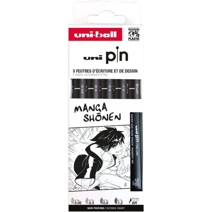 Feutre technique - Uni-ball - PIN 01200 - 0,1 mm - Pointe calibrée L'Uni PIN est un feutre d'écriture et de dessin précis et technique. Avec sa pointe calibrée et son encre SUPER INK, il garantit des tracés permanents, intenses, nets et précis. À la fois robuste et design, reconnu pour la densité et la couvrance de ses couleurs, il est l'outil incontournable de nombreux artistes et professionnels pour leurs réalisations techniques ou artistiques (y... Stylo Feutre Technique Feutre Technique Uniball Pointes Calibrees 0,8mm Encre Noir Trace Encre Permanente Résistante à L'eau Description du produit Un tracé net et précis. Pointe calibrée encre Super Ink : pigments inaltérables, permanent, résiste à l'eau et à la lumière , Précision du trait Pointe calibrée acrylique encre Noir Super Ink : pigments inaltérables, permanent, résiste à l'eau et à la lumière. Précision du trait. Idéal pour plans... Points forts Un tracé net et précis Idéal pour plans, calques, rough Couleur d'écriture: Noir Description du produit: Uni-Ball PIN , Couleur: Noir