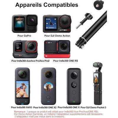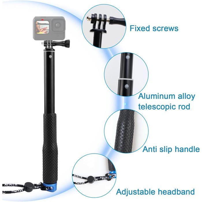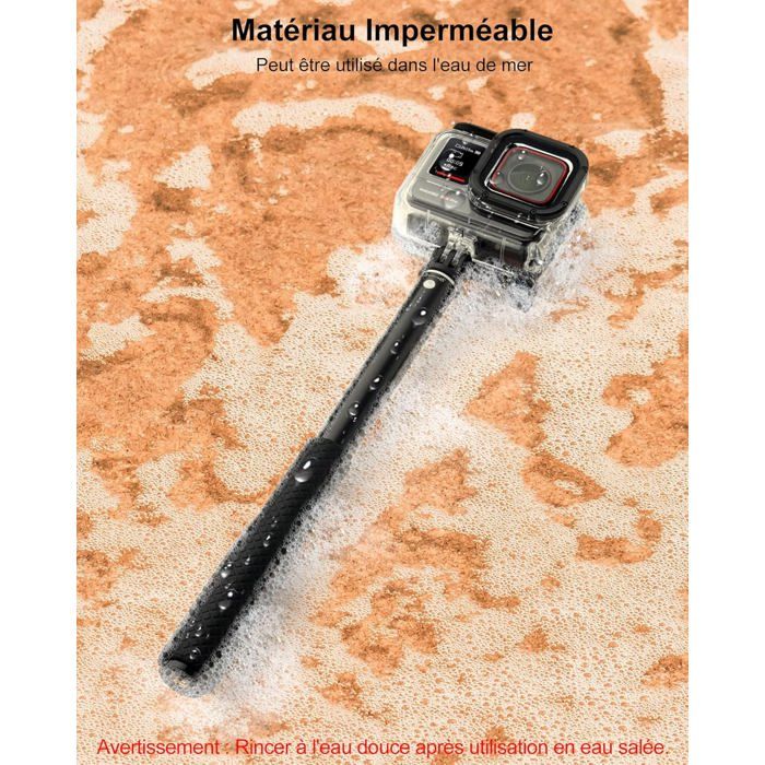 En mode étendu, elle vous permet de prendre des photos de groupe, des panoramas et des vidéos immersives en toute simplicité. Luxebell Selfie Stick/Einbeinstativ Einstellbare für Gopro Hero 7 6 5, Session 5 Système Twist and Lock sécurisé: Chaque section de la perche selfie se verrouille facilement par rotation. Perche Gopro Tekca 37inch Perche à Selfie Télescopique Etanche Aluiniu Pour Perche Pour GoPro Hero En mode compact, elle se range facilement dans un sac à dos. Une dragonne ajustable avec bouton de sécurité est incluse, vous permettant de garder la perche attachée à votre poignet pour plus de tranquillité. UNIXYZ 36 Aluiniu Selfie Stick it Stativ für Gopro Hero 11/10/9/8/7... Compatibilité étendue: Compatible avec Go-Pro Hero 13, 12, 11, 10, 9, 8, 7, 6, 5, DJI Osmo Action, Insta360, APEXCAM, WOLFANG, Action 5 Pro/4, Surfola et plus, cette perche selfie devient l’accessoire incontournable de toutes vos aventures. Large compatibilitéCette perche à selfie télescopique étanche est conçue pour une grande variété de caméras d’action :Go-Pro Hero 13, 12, 11, 10, 9, 8, 7, 6, 5DJI Osmo Action et Osmo Action 5 ProInsta360 et autres caméras 360° EK7000 Pro, V50X, V50 Elite, V50 Pro, Brave 7 LEWOLFANG, Surfola, APEXCAM, GOOKAM, Campark, SJCAM, Crostour, APEMAN, XTU, VictureIdéal pour toutes vos activitésQue vous soyez :En voyage pour immortaliser vos souvenirsEn randonnée ou à vélo pour capturer vos exploitsÀ la plage ou en plongée pour filmer sous l’eauEn train de pratiquer du surf, du ski ou tout autre sport extrême Caisson pour GoPro HERO5 et Filtre Vous pouvez filmer en plongée, en contre-plongée, en mode selfie ou encore capturer des perspectives inédites qui donnent vie à vos vidéos et photos. Liberté de mouvement et angles créatifsSa tête orientable à 180° offre une liberté totale pour choisir l’angle parfait. Longueur réglable et pratique: La perche à selfie télescopique s’étend de 30 cm à 92 cm, offrant une flexibilité maximale pour capturer des angles variés. Conception télescopique et pratiqueAvec une longueur réglable de 30 cm à 92 cm, la perche à selfie offre une grande flexibilité pour s’adapter à toutes les situations. Ce mécanisme robuste assure une stabilité optimale, même lors de sports extrêmes ou de plongées sous-marines.