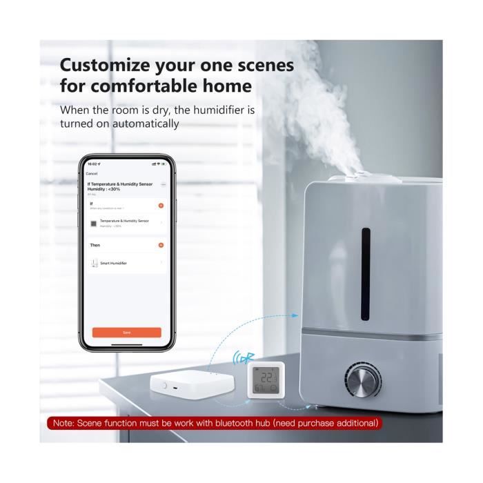 Tuya Smart Zigbee Thermomètre Hygromètre Détecteur De Température Et D... Le capteur prend 30 minutes ou 1 heure pour correspondre à la température ambiante, et la mesure est précise. Précision de détection d'humidité : 6 % RH. [CONNECTIVITÉ SANS FIL] : utilise la norme ZigBee IEEE 802., 15., 4 pour une connexion fiable avec une portée allant jusqu'à 45 mètres. Intervalle de détection de la température et de l'humidité : 300 secondes. Veuillez noter : l'erreur de température de ce capteur est de ± 1 ℃ et l'erreur d'humidité de ± 5% RH. [Large plage de détection] : mesure les températures de -10 °C à 60 °C et l'humidité de 1 % à 95 % RH. Plmvhpb Capteur Intelligent de Température et D'Humidité Tuya ZigBee, Thermomètre Hygromètre Extérieur Mini Température Humi Plage de détection de température : -10 °C à 60 °C (14 °F à 140 °F) Plage de détection d'humidité : 1 % à 95 % d'humidité relative (sans condensation). Cependant, nous avons développé une fonction de requête vocale. Capteur Humidité Zigbee Capteur De Température Et D'humidité WiFi Pile AA Non Incluse Prise en charge des haut-parleurs intelligents tiers 1., Étant donné que les haut-parleurs intelligents tiers n'ont pas de panneaux de contrôle pour les capteurs de température et d'humidité, L'application des haut-parleurs intelligents tiers peut ne pas afficher correctement la température et l'humidité. Application : pour Tuya / pour Smart Life. Toute valeur dans cette plage est normale., 2., Le défaut du capteur et le processus de fabrication coïncident, et il y a aussi quelques erreurs entre les produits du même modèle., 3., Selon la troisième loi de Newton, la conduction thermique prend un certain temps. Large plage de détection] : mesure des températures de -10 °C à 60 °C et l'humidité de 1 % à 95 % RH. Parfait pour différentes pièces et environnements de votre maison Norme sans fil : pour ZigbeeIEEE 802., 15., 4 Distance sans fil : 45 m. Type de batterie : 1 x AA (non incluse). Faible consommation en veille de seulement 45 uA pour un fonctionnement longue durée. Notez que les capteurs nécessitent un temps d'adaptation de 30 à 60 minutes pour afficher des valeurs spatiales précises. Alimentation : USB 5 V/1 A. [CONCEPTION ÉCONOMIQUE EN ÉNERGIE] : alimenté par USB 5 V/1 A ou 1 pile AA (non incluse).