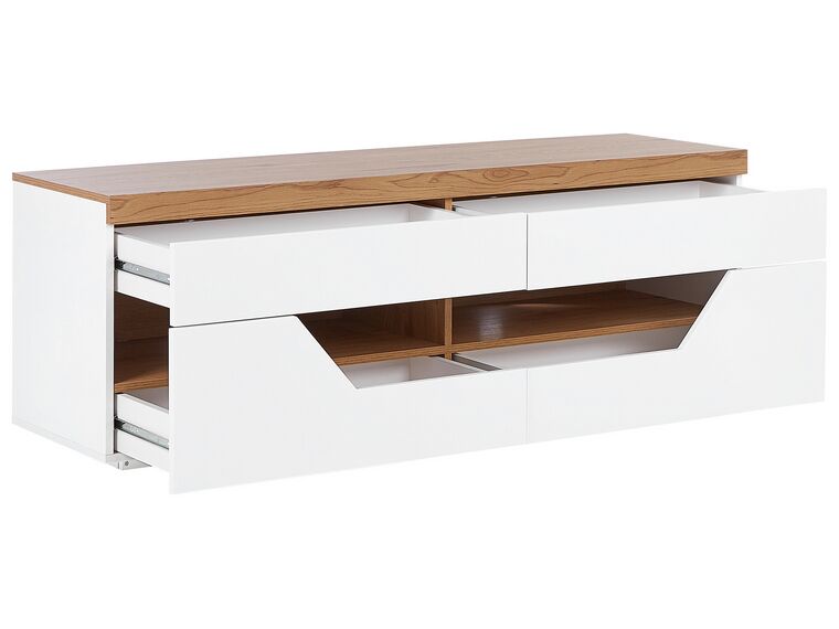 Finition Blanche et Polyvalence Décorative: La couleur blanc pure et intemporelle de ce meuble tv blanc s'adapte à tous les styles de décoration, du moderne au contemporain. Meuble TV Avec étagères Et Placards Les Tendances - Meuble TV Blanc Et Bois Clair DakotaWO Meuble Support TV 70 Pouces Rangement Meuble TV Dimensions totales : 160 x 40 x 45 cm. Ce meuble TV est adapté aux écrans de 70 pouces. Doté d'une nouvelle méthode d'installation améliorée, il peut être assemblé par une seule personne. Meuble TV moderne : Fabriqué en panneaux de particules, ce meuble TV LED offre une structure stable et une capacité de charge allant jusqu'à 30 kg Ses proportions harmonieuses (L160 x P40 x H45 cm) s'intègrent parfaitement dans votre salon et conviennent pour les téléviseurs jusqu'à 70 pouces. Idéal pour organiser consoles de jeuge, livres et décorations, il maintient votre espace de vie propre et ordonné. Meuble TV moderne brillant en blanc avec éclairage LED et espace de rangement, 178 cm, pour téléviseurs jusqu'à 70 pouces, adapté au salon · 256,39€. 2 vendus... Design Moderne et Dimensions Idéales: Ce meuble TV au design épuré mesure 160 cm de longueur. Il se compose de deux compartiments et est divisé en quatre niveaux. Structure Stable et Verre Trempé Sécurisé: La structure robuste en panneaux de fibres de densité moyenne (MDF) et les pieds renforcés assurent une excellente stabilité (charge max., 45 kg). Meuble TV 2 portes 2 niches L160 x H50 cm - Blanc Copenhague | Maisons du Monde Il est fabriqué en MDF, a une capacité de charge recommandée de 45 kg et est disponible en blanc. L'étagère en verre trempé apporte une touche d'élégance et de légèreté.,