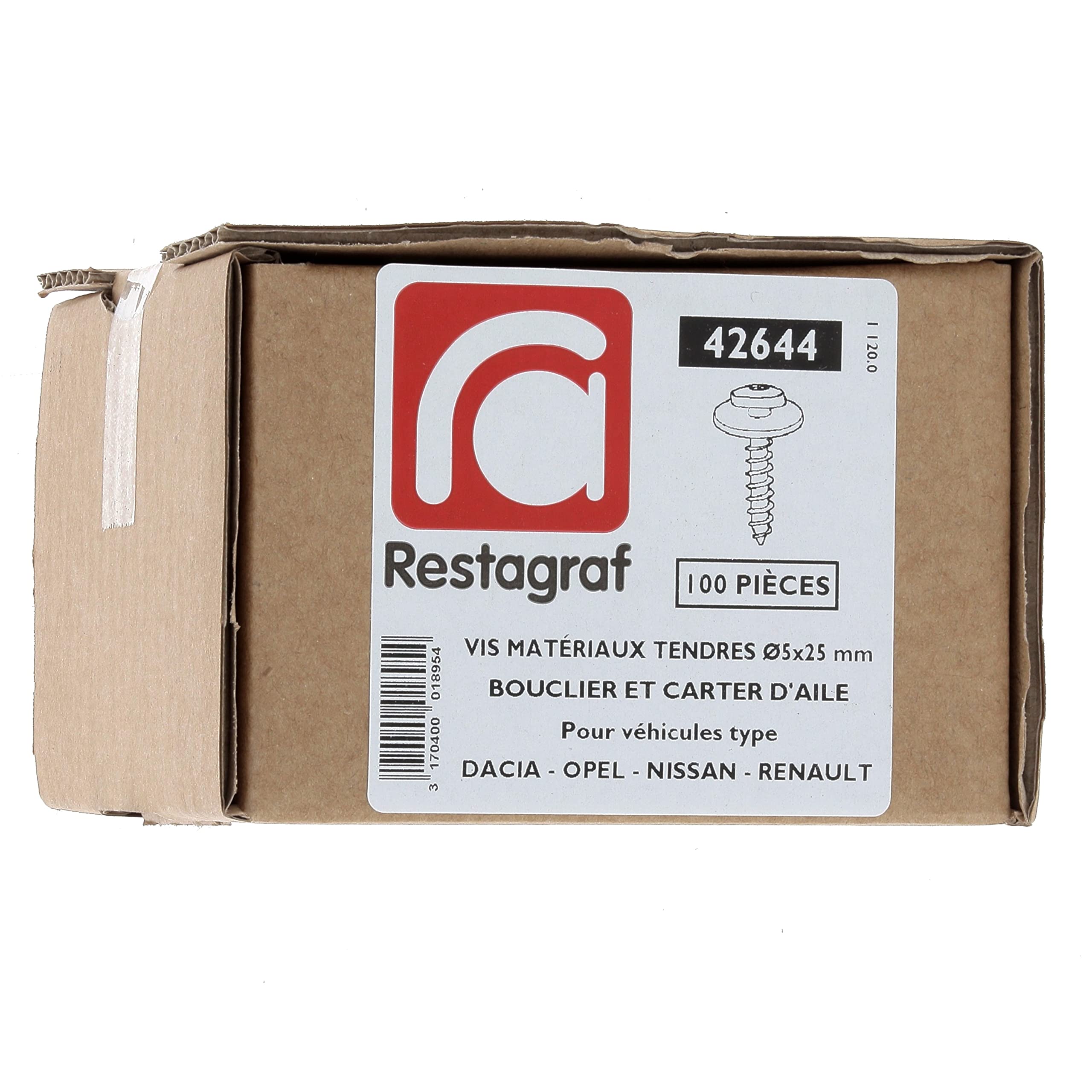 Vis Tole Boîte De 100 Vis Matériaux Tendres Bouclier Et Carter D'aile/pare-boue Vis Plastique Matériaux Tendres Vis matériaux tendres ø 5 x 16 mm bouclier et carter d'aile Les vis matériaux tendres 5 x 16 mm de Restagraf sont spécialement conçues pour offrir une fixation sûre et durable dans des conditions exigeantes. Fabriquées en acier traité, elles présentent une résistance accrue à la corrosion, ce qui les rend idéales pour une utilisation dans des environnements humides et salins, tels que ceux... Elles garantissent une fixation solide pour votre carter d'aile & pare-boue. Compatibles avec DACIA DUSTER II, LOGAN II / SANDERO II, RENAULT ARKANA, ESPACE IV, LAGUNA III, SCENIC II. Parfaites pour les réparations de carrosserie, les montages électriques, la fixation d’éléments mécaniques ou d’accessoires. Ces vis sont spécialement conçues pour des matériaux tendres comme le plastique. HAUTE RESISTANCE : Leur composition leur confère une haute résistance et leur permettra de tenir durablement dans le temps. APPLICATION UNIVERSELLE : Parfaites pour les réparations de carrosserie, les montages électriques, la fixation d’éléments mécaniques ou d’accessoires. UTILISATION PROFESSIONNELLE : Convient aux garagistes, carrossiers, artisans ou bricoleurs exigeants en recherche de fiabilité. 1 Allée des Bouleaux -F-95110 SANNOIS 33 (0)1 39 98 55 00 info@ ... * Informations non contractuelles données à titre indicatif