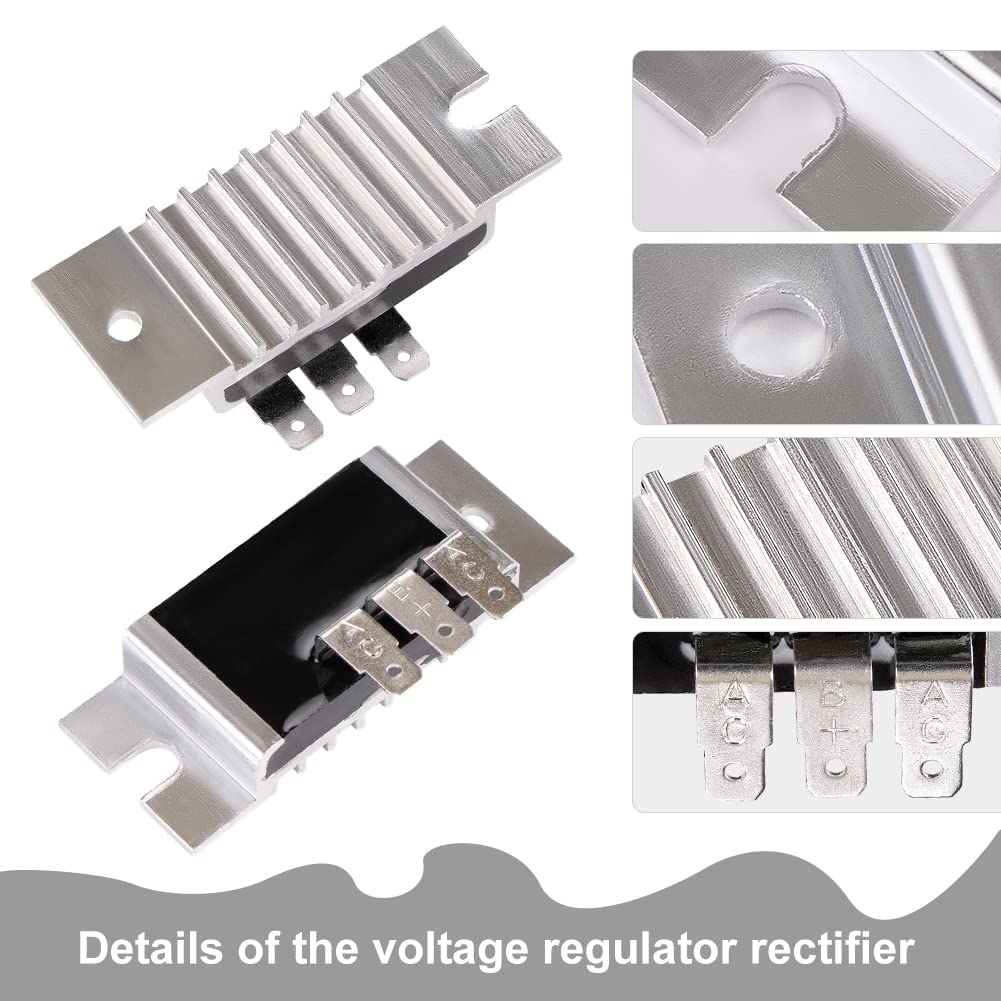 Régulateur Redresseur Tension Kawasaki Régulateur De Tension De Moto 21066-7011, Remplacement En Redresseur Moteur Fh Kawasaki Pour Kawasaki Pour la plupart Pour FH Pour la série Pour les moteurs Pour FX1000V-CS04 Pour FX1000V-AS14 Améliorez votre moto avec un composant fiable qui s'adapte parfaitement. La construction à haute résistance garantit une durabilité antirouille et des performances à long terme. La fonction du redresseur est de convertir le courant... Redresseur De Régulateur 21066‑7011, Régulateur De Tension De Moto 21066 7003 Redresseur En Alliage Daluminium Pour Moteurs De La Serie Fh Fx 90668673 Emballage inclus : 1 x régulateur de tension redresseur REGULATEUR DE TENSION pour Kawasaki 21066-2071 pour John Deere AM109462... La conception légère réduit le poids, réduit la charge du véhicule et améliore la maniabilité et l'économie. Régulateur tension redresseur moteurs pour Kawasaki série FH FX1000V-CS04 FX1000V-AS14 Numéro de pièce : 21066-7011, 21066-7003, 21066-7001, 21066-7006 Numéro de pièce : 21066-7011, 21066-7003, 21066-7001, 21066-7006Pour Kawasaki plupart des moteurs série FH (751V, 801V, 850V, 921V, T00V), tels que FH430V-CS20, FH430V-CS23, FH541V-AS25, FH541V-CS44, FH580V-AS31, FH580V-AS33, FH580V-ES35, FH601V-BS24, FH601V-BS31, FH601V-CS27, FH601V-DS01, FH601V-ES19, FH601V-GS21, FH641V-BS21, FH641V-ES17, FH641V-ES25, FH680V-BS24, FH680V-DS25, Moteurs FH680V-FS13, FH680V-GS01, FH721D-AS05, FH721D-BS09, FH721V-CS31, FX801V-CS04, FX850V-AS07, FX850V-AS11, FX850V-AS15, FX1000V-CS04 et FX1000V-AS14Matériau : boîtier en alliage d'aluminiumCouleur : comme indiquéEmballage inclus : 1 x régulateur de tension redresseurLa fonction du redresseur est de convertir le courant alternatif émis par le magnéto en courant continu, tout en réduisant la tension supérieure à une tension adaptée à la batterie et en dissipant l'excès de puissance à travers des résistances pour atteindre l'objectif de stabilisation de la tension.