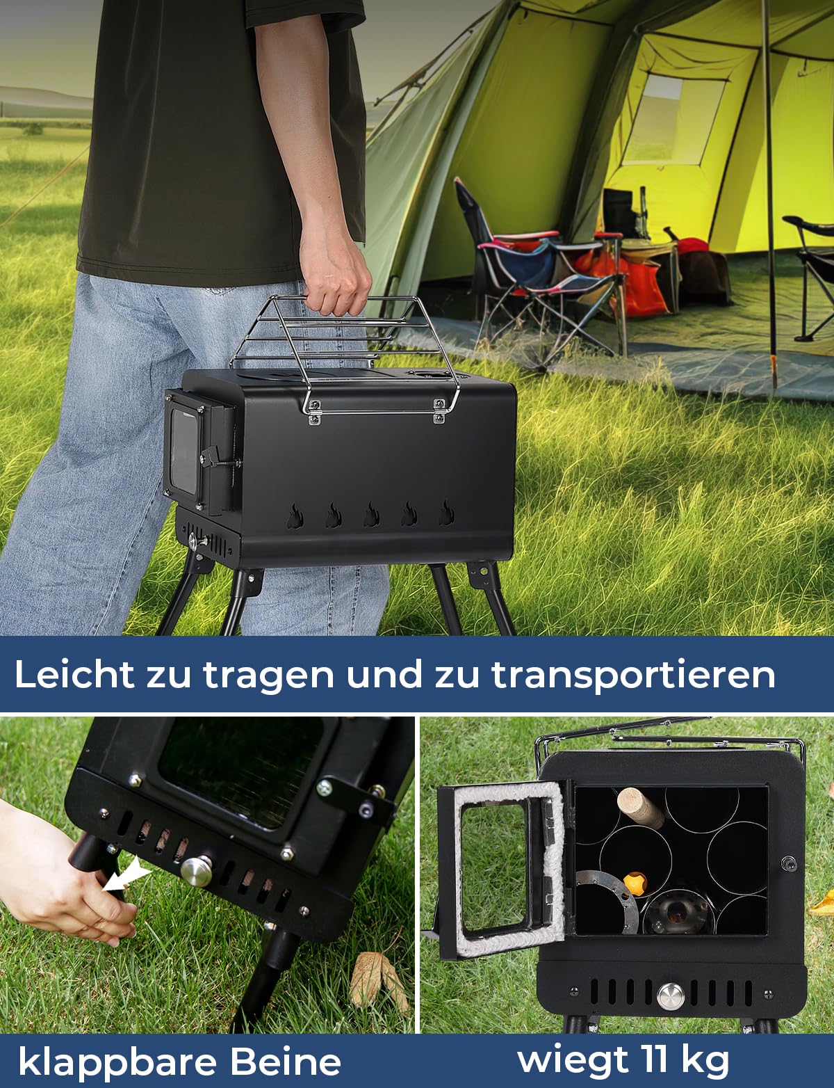 Plaque de cuisson et grille latérale : le dessus du réchaud est conçu pour accueillir une casserole, une poêle ou une bouilloire, de sorte que vous pouvez cuisiner un repas copieux en plein air aussi facilement qu'à la maison. Poele A Bois Camping Camp Feuer Four De Tente, Dimensions étendues : 54 X 28 X | WhichOne Poêle Tente Camping Les ailes des deux côtés sont dotées d'un motif creux, et vous pouvez poser la vaisselle après avoir été soulevée et fixée. De plus, le four de tente est maniable et pratique à transporter : les tubes du four sont stockés à l'intérieur du four de tente, les pieds sont rabattables et la poignée de transport est mobile - des conditions idéales pour vous accompagner lors de votre prochain voyage en camping Construction stable et stable de haute qualité : avec son cadre en acier robuste et sa peinture résistante à la chaleur, ce four est conçu pour une utilisation à long terme et résiste aux conditions extérieures difficiles. Il offre suffisamment de surface de chauffage et est parfait pour cuisiner et bouillir. CampFeuer Four pour tente en acier inoxydable 51,5 x 42 x 216 cm Chauffage de tente, four à bois portable pour camping. 194,95€. FM Poêle à bois en acier CH-0... En outre, le poêle de tente est maniable et compact : les tuyaux de poêle sont stockés à l'intérieur du four de la tente et les pieds sont pliables - Conditions idéales comme compagnon pour le prochain voyage en camping Empêchez vos invités de geler, que ce soit à l'extérieur ou dans une tente ignifuge. Idéal pour le camping, la randonnée et les excursions de chasse. Four à bois d'extérieur avec sifflet de cheminée, cuisinière de camping, ouverture du four de 10,9 cm, pieds rétractables pour un rangement et un transport faciles En même temps, vous pouvez même cuisiner, rôtir, cuire ou chauffer de l'eau au four. Le cendrier intégré assure un nettoyage sans effort.