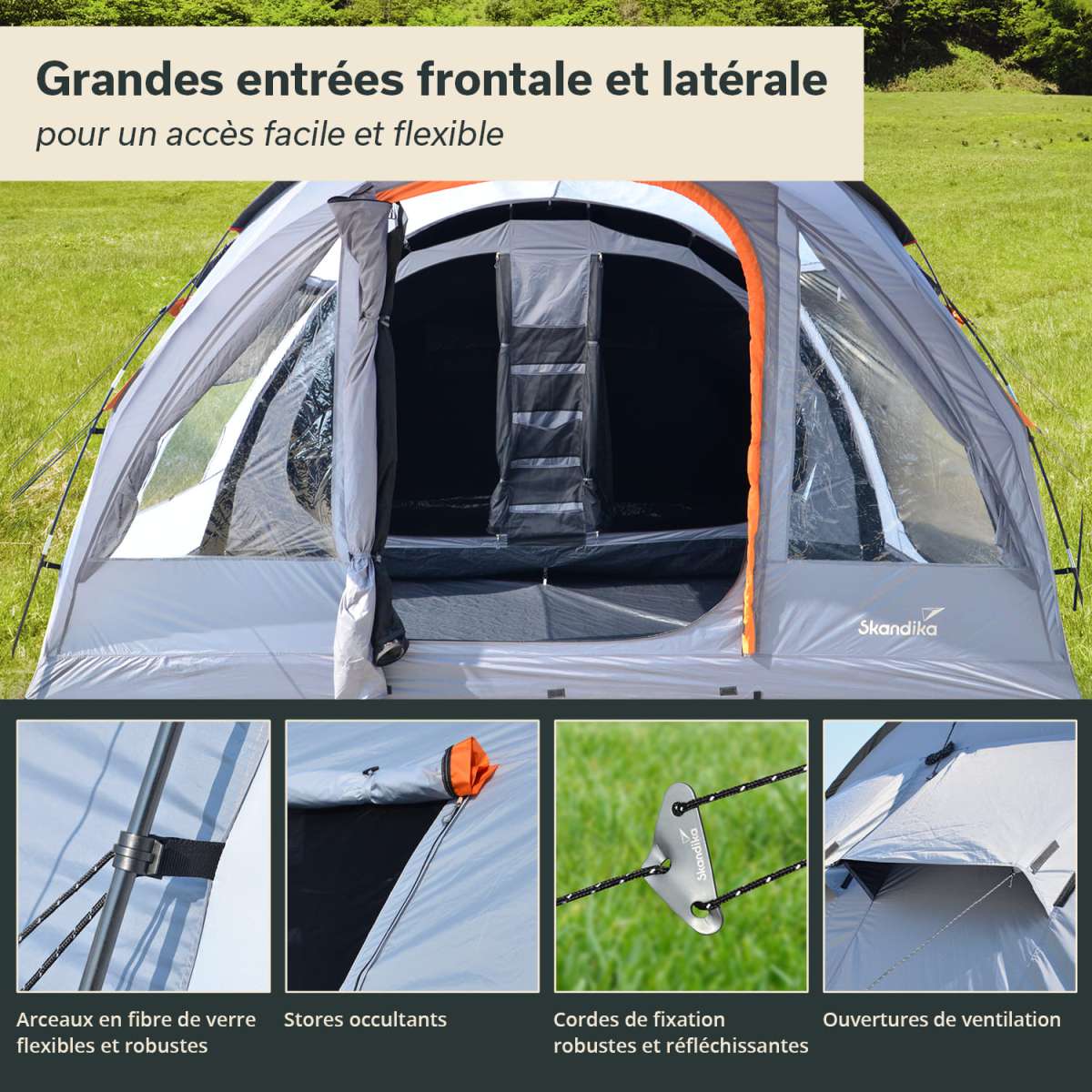 Elle peut en outre être divisée en 2 zones de couchage par une cloison de séparation. Faire la grasse matinée plus longtemps, coucher les enfants plus tôt ou faire une sieste à midi ? Tout est possible ! skandika Canopy Gotland 5 Vorzelt Wetterschutz 370x240x210 cm grün neu Dans nos rubriques camping, fitness et sacs, vous trouverez tout ce dont vous avez besoin pour un style de vie actif - de haute qualité, pratique et absolument fiable. ✔ CABINE DE COUCHAGE NOIRE : notre technologie Sleeper veille à ce que la cabine à couchage pour jusqu'à 5 adultes (215 × 340 cm) soit obscurcie par un matériau spécial. Que ce soit à l'entrée avant ou à l'entrée arrière, là où le soleil brille, il est possible de créer un petit coin d'ombre en un clin d'œil. Avec poches de rangement, passage protégé pour les câbles, crochet pour lampe de camping, sac de transport Service après-vente en 5 langues (ALL, FRA, ANG, ESP, ITA) Toutes sont équipées de stores occultants pour une intimité protégée. Le grand séjour offre beaucoup de place pour un aménagement individuel avec des meubles de camping. Vaste gamme d'accessoires Le montage de cette tente spacieuse est rapide et facile grâce aux arceaux marqués en couleur et le système d'emboîtement de l'armature fait gagner du temps et est très pratique. Description du produit Egersund 5 XL Sleeper Protect Nous avons élargi notre populaire tente Egersund pour 5 avec un tapis de sol solidement cousu à une version un peu plus grande avec la Skandika Sleeper Technology, un revêtement spécial de la tente extérieure, et des cabines intérieures obscurcies. Skandika Sleeper Technology Sur cette tente, un revêtement spécial a été appliqué sur la toile extérieure au niveau de la cabine de couchage, qui absorbe presque 100 % de la lumière du soleil. Tente 3 Chambres Séparées Tente Tunnel Camping Polyester 2-3 Personnes Auvent Spacieux Étanche Tente Grande Hauteur 2m La sécurité d'être entre de bonnes mains avec Skandika : 1 million de clients satisfaits Deux entrées L'entrée avant est dotée d'un auvent astucieux et, grâce aux deux piquets de relevé, l'entrée latérale peut être utilisée comme store banne. Ce que propose Skandika Vous voulez mener une vie active, saine et équilibrée ? Alors, nous avons l'équipement qu'il vous faut. Dimensions totales : 565 x 370 cm / Séjour : 270 x 370 cm / Cabine : 340 x 215 cm / Poids : 20,5 kg Équipement de pointe Les poches de rangement aident même les colocataires les plus chaotiques à garder de l'ordre et le crochet de plafond pratique permet d'accrocher une lanterne de camping la nuit. Des passages pour câbles protégés des intempéries assurent l'alimentation électrique nécessaire. Le facteur de protection UV 50+ du matériau de la tente empêche la toile extérieure de se fragiliser ou de se fissurer sous l'effet d'un rayonnement solaire intense et lui confère une plus grande longévité. Entrée avant avec petit auvent, entrée latérale également utilisable comme store banne La cabine peut être divisée selon les besoins grâce à une cloison enroulable. La tente de camping pèse 20,5 kg et est livrée avec un sac de transport robuste et les instructions de montage. Cabine de couchage flexible Pour plus de flexibilité, la cabine peut être laissée ouverte avec une moustiquaire pour que l'air frais puisse circuler tout en laissant les insectes à l'extérieur. Tapis de sol solidement cousu Le tapis de sol de l'Egersund 5 XL Sleeper Protect est solidement cousu. Fenêtres astucieuses Cinq fenêtres en film plastique assurent une grande luminosité même lorsque les portes sont fermées. Avec une hauteur de 2 mètres, 3 entrées et une marquise, cette tente de camping saura vous séduire par sa polyvalence et sa durabilité. Les quatre... De nombreuses fenêtres et 2 entrées assurent beaucoup de lumière, d'air et une grande flexibilité Trois d'entre elles sont équipées de moustiquaires supplémentaires qui assurent une bonne circulation de l'air. ✔ IMPERMÉABLE : la colonne d'eau de 5 000 mm, les coutures scellées et la protection UV de 50+ protègent efficacement la tente de camping contre le vent, la pluie et le soleil. Skandika Sleeper Technology avec cabines de couchage obscurcies et revêtement spécial Tente Tunnel Familiale 6 Places Polyester Imperméable 3000mm Camping 550cm Orange - ComfortXL Outdoor Living Points forts Espace XXL pour 5-6 personnes Tissu imperméable 3000mm Fenêtres mesh aération optimale 291,99 €364,99 € - 73,00