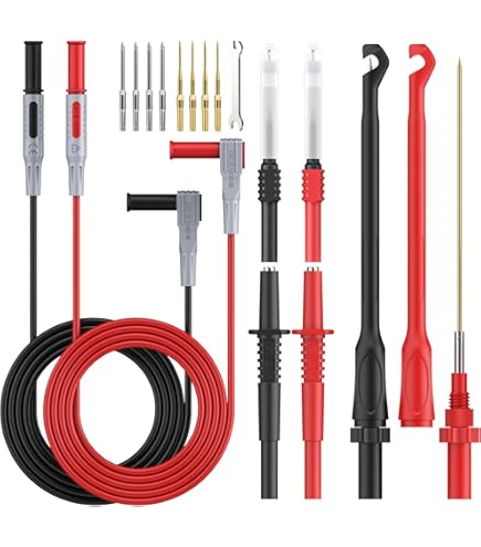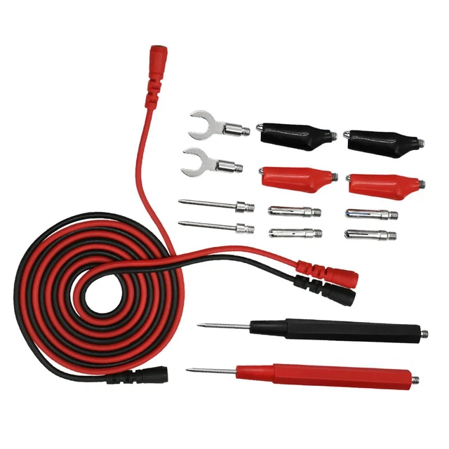 Sa flexibilité et sa durabilité en font un choix idéal pour une utilisation quotidienne dans divers environnements de test, garantissant des résultats précis et fiables à chaque fois. Chaque câble de test est fabriqué en cuivre, garantissant non seulement une excellente conductivité, mais aussi une flexibilité adaptée à des environnements de travail variés. Grâce à sa conception durable, ce kit est idéal pour une utilisation quotidienne, même dans des conditions difficiles. Matériaux pour une Durée de Vie Élevée : Ce kit de fils de test de multimètre est fabriqué en cuivre, offrant une excellente conductivité. Les accessoires interchangeables, y compris les sondes de test remplaçables, les pinces crocodiles et les fiches bananes, vous permettent de vous adapter facilement à différents types de tests. Kit de filetage 2 pièces crochet d'outil fiches bananes multimètre fils... Cette sécurité est primordiale pour ceux qui travaillent avec des systèmes électriques, offrant la tranquillité d’esprit nécessaire lors des tests. Commandez dès aujourd’hui le kit de fils de test de multimètre de 16 pièces et découvrez la différence qu’il peut faire dans vos projets de mesure. Découvrez le kit de 16 pièces de fils de test de multimètre, conçu pour répondre à tous vos besoins en matière de mesure électrique. Jeux Crocodile Duokon Fils De Test Multimètre Jeu De Sondes De Test De Réparation, Jeu Câbles Test Automobile électronique Les fils de test du multimètre sont fabriqués en cuivre de haute qualité, doux, flexible et durable. Les deux extrémités sont des douilles femelles filetées... Normes de Sécurité Élevées pour Travailler en Toute Confiance : Avec une classification de CAT III 1000 V et 10 A, Diamètre de la ligne d'essai, 2,8 mm, nos fils de test garantissent une utilisation sécurisée même dans des environnements à haute tension. Compatibilité Étendue avec Divers Instruments : Nos cordons de multimètre sont conçus pour fonctionner avec la plupart des multimètres, pinces ampèremétriques et autres instruments de test. Accessoires Interchangeables pour une Utilisation Polyvalente : Le kit comprend des sondes de test remplaçables, des pinces crocodiles, des fiches bananes et des fiches plates, vous permettant de vous adapter rapidement à différents scénarios de mesure. Kit Complet pour Toutes Vos Besoins de Test : Le paquet contient tout ce dont vous avez besoin pour vos mesures électriques : 2 cordons de test, 2 poignées de test, 4 pinces crocodiles, 2 sondes remplaçables, 4 fiches bananes remplaçables et 2 fiches plates remplaçables. Câble de test Kit de Fils de Multimètre, Fils de Test de Multimètre D Cela signifie que vous pouvez facilement passer d’un appareil à un autre sans avoir à vous soucier de la compatibilité, augmentant ainsi votre efficacité. Un autre avantage notable est la compatibilité de nos cordons de test. La sécurité est primordiale dans le domaine électrique, et nos fils de test sont classés CAT III à 1000 V et 10 A. Que vous mesuriez des tensions dans un circuit électronique, testiez des composants automobiles ou réalisiez des travaux de maintenance à domicile, vous aurez tous les outils indispensables à portée de main.