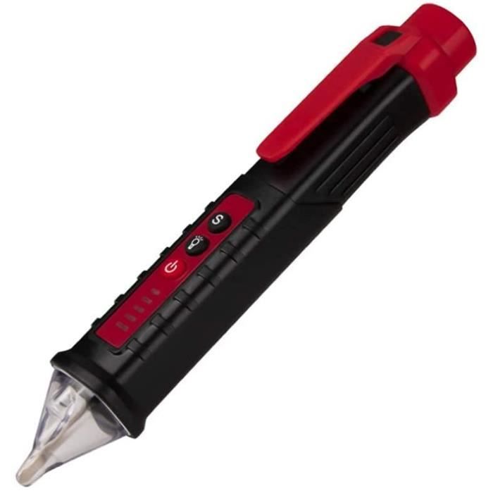 Mesure AC à double échelle Haute sensibilité: 12 ~ 1000v Faible sensibilité: 48 ~ 1000v Appuyez sur la touche h pour sélectionner la sensibilité, mais les valeurs mesurées ne seront pas affichées pendant une mesure spécifique. Méthode d'alarme: barre analogique son et lumière Plusieurs rappels d'alarme Lorsque le passage d'un courant alternatif est détecté, l'écran passe à l'état d'affichage correspondant et une lumière rouge s'allume également dans la zone de la sonde de détection, accompagnée d'une alarme sonore. Testeur de stylo couleur HT100P Testeur de tension sans Contact 48... 【Facile à utiliser】La taille mini est facile à transporter, vous pouvez le mettre dans votre poche avec vous. 【Testeur de tension sans contact】 Utilisé pour identifier les fils sous tension et les fils neutres, détecter les fils cassés et détecter la présence de tension alternative. Stylo testeur de détecteur de tension électrique sans contact AC12... L'appareil peut être utilisé pour tester la tension alternative dans les câbles, les fils, les prises de courant, les circuits domestiques, les appareils d'éclairage, les interrupteurs et les prises de courant à l'épreuve des manipulations. Convient à différentes plages de tension. Testeur De Tension Outillage Electricien MESTEK , Double échelle 12-1000V / | FindTheDeal Outils Electricien Stylo Electrique Indicateur de batterie faible Test de ligne de feu / neutre L'appareil s'éteint automatiquement s'il n'est pas utilisé pendant 5 minutes. Il est également équipé d'une torche lumineuse pour tester les circuits dans les environnements sombres. Au fur et à mesure que la tension augmente, la fréquence du voyant rouge et du signal d'avertissement augmente. L'extérieur en plastique à double isolation et l'étui robuste vous offrent une tranquillité d'esprit supplémentaire lors de l'utilisation. Fonction lampe de poche Lorsque vous testez des sections peu éclairées, vous pouvez allumer la lampe de poche fournie avec le stylo de test électrique, ce qui peut vous aider à mieux comprendre les situations de circuit complexes! Lampe de poche: lampe d'éclairage LED Détection de points de rupture de fil , Fonction NCV MESTEK-Tools 1 * stylo d'essai volatil , 2 * 1., 5v AAA batterie 1 * manuel de l'utilisateur Arrêt automatique de l'alimentation Si aucune opération n'est effectuée dans les 5 minutes, le stylo de test de tension s'éteint automatiquement. Stylo testeur de détecteur de tension électrique sans contact AC12 Il suffit de placer l'appareil à proximité d'une prise de courant, d'une alimentation électrique ou d'un câble isolé.