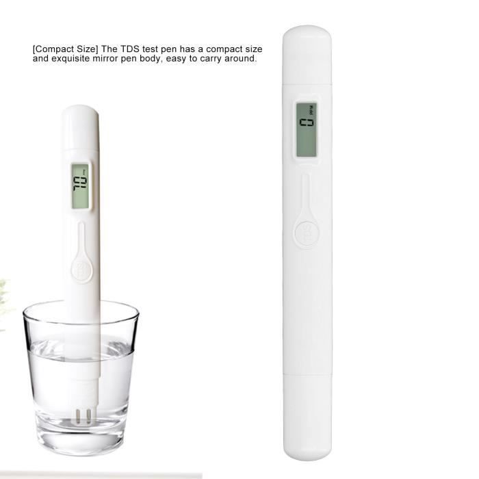 Portable TDS Eau Portable Stylo De Test De Qualité Numérique Compteur D Eau Filtre Mesure De La Qualite De L Eau Testeur De Purete Pour Piscine D Aquarium Caractéristique : 1. Le stylo de détection de la qualité de l'eau est utilisé pour détecter la mauvaise eau est en regardent la qualité et dans les rapports... Analyseur Pureté Eau Portable Testeur Tds Stylo De Test Tds Testeur De Pureté De L'Eau Numérique Testeur Ppm Portable Testeur d'eau numérique 3 en 1 TDS, PH 0.0-14.... – Grandado Spécification:taille : 140*16mmcouleur : blancPlage de mesure : 0-9990 ppmAffichage : écran LCDCourant de travail : 3 mAAlimentation : 2 piles AG13 de 1,5 VLe forfait comprend :1 x compteur numérique de pureté de l'eau==========, 1., **Test précis de la qualité de l'eau** : Le testeur de qualité de l'eau fournit des mesures précises de la pureté de l'eau, vous permettant de déterminer la qualité de votre eau par rapport aux normes attendues., 2., **Mesure TDS complète** : Ce testeur d'eau numérique détecte efficacement les solides dissous totaux (TDS) allant de 0 à 9999 PPM, vous assurant ainsi d'être informé de la teneur en minéraux et en sel présente dans votre eau potable., 3., **Conception conviviale** : Équipé d'un écran LCD, ce compteur portable présente une conception étanche et un étalonnage automatique de la température, ce qui le rend facile à utiliser et fiable for des évaluations précises de la qualité de l'eau., 4., **Résultats rapides** : Bénéficiez de tests rapides et efficaces, car la lecture se stabilise en trois secondes, vous permettant d'évaluer rapidement la sécurité et la pureté de votre approvisionnement en eau., 5., **Applications polyvalentes** : for une utilisation à la maison, au bureau ou en voyage, le testeur de qualité de l'eau est essentiel for quiconque souhaite s'assurer que son eau est exempte de composés nocifs et répond aux normes de sécurité. Il mesure la qualité de l'eau à l'échelle des parties par million., 6., TDS signifie total des solides dissous, la quantité de minéraux et de sels d'eau dans l'eau.