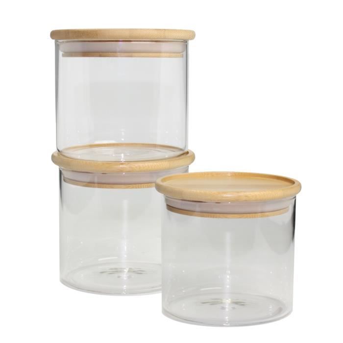 Durable : résiste à des températures de -40 °C à +400 °C et convient à tous les types d'environnements : congélateur, résistant à la corrosion et à la chaleur. ainsi que pour les liquides comme le vin, le vinaigre de fruits ou le miel. Grâce au joint en silicone, votre sucre garder au sec et préserver l'arôme de vos grains de café. La recommandation pour chaque cuisine., | 306936 Caractéristiques du produit : Lot de 3 récipients en verre , 2,1 l (maximum). Le couvercle en bambou avec joint d'étanchéité en silicone ferme le récipient hermétiquement. Parfait pour le stockage et la conservation des aliments frais Caractéristiques du produit : lot de 3 récipients en verre 10 x 28 cm, ronds, 2,1 l, joint d'étanchéité en silicone pour une fermeture hermétique | Verre borosilicate | Les bocaux passent au micro-ondes et au lave-vaisselle (pas le couvercle). Parfait pour le stockage et la conservation des aliments frais. Parfait pour les aliments tels que les haricots, le riz, le sucre et les épices. Résistant Chaleur -40°C à 400°C Nihngvjm Petite Boîte à Thé, Boîte De Conservation En Verre Epais Et Résistant Transparent Avec Couvercle En Bois Durable Fraîche Et étanche à L'humidité Pour Café Thé Bonbons Épices Noix Alimentaire Pour Riz Pâtes épices Le bocal en verre est naturel et recyclable, répondant parfaitement à vos exigences quotidiennes. Bocaux de conservation en verre avec couvercles à poussoir... L'humidité, les odeurs ou les parasites n'ont aucune chance – le récipient en verre Arendo maintient le contenu fermé en toute sécurité. Idéal pour le stockage à long terme : le joint en silicone garantit une étanchéité hermétique. Passe au lave-vaisselle et au micro-ondes (sans couvercle). Contenu de la livraison : lot de 3 récipients en verre Arendo avec couvercle en bambou et joint d'étanchéité en silicone Praknu Bocaux à provisions avec couvercle hermétique - Set Les aliments restent frais et savoureux. Contenu de la livraison : lot de 3 récipients en verre Arendo avec couvercle en bambou et joint en silicone Résistant à la chaleur, durable, passe au lave-vaisselle et au micro-ondes. Plage de température (verre) de -40 °C à 400 °C.