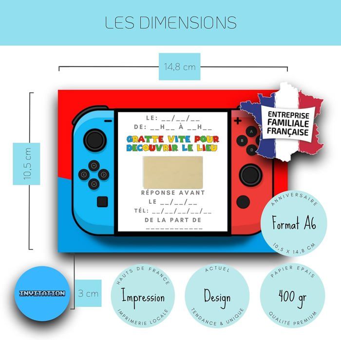 Et vos enfants seront fiers de distribuer leurs invitations uniques à leurs amis, copains et copines. Que ce soit pour une fête d’anniversaire, une soirée ou un autre événement, ces invitations sur le thème des Indiens captivent l’attention. Description du produit Kit Complet Pok mon pour Petits Dresseurs Plongez dans le monde de Pok mon avec inclus 10 cartes, enveloppes et stickers th matiques. Ajoutez une touche de myst re avec nos autocollants dor s gratter. Une invitation qui n'est pas seulement un parchemin, mais une porte vers l'aventure. Celui ci provoquera un bel effet. Cr ativit et Participation Enfantines Laissez les... 💌 Vous n'avez qu'à remplir les informations, coller les stickers, et le tour est joué! 🎨 Ce set comprend 10 cartons d'invitation imprimés, 10 enveloppes blanches, et 10 stickers pour personnaliser chaque carte. Chaque set d'invitation est conçu pour être un atelier créatif où chaque enfant peut s'exprimer en remplissant, collant et décorant les cartes. 🌸 Maman, préparez une aventure extraordinaire avec nos invitations thème Indiens! 🌿 Fabriquées en France avec du papier épais certifié Imprim'Vert, nos cartes respectent l'environnement et sont parfaites pour une maman attentive à l’écologie. Papeterie Créative Fête Enfant Carte Invitation Anniversaire Kit Cartes D'Invitation Anniversaire à Gratter - Thème Forêt - 10 Cartes + Enveloppes - Français - RXLITE Kit Créatif Enfant Invitation Originale Avec Autocollant Doré L’ensemble est soigneusement élaboré pour une conception durable, offrant un produit respectueux de l'environnement pour toutes les fêtes! RXLITE Kit créatif preiu Invitations Anniversaire Thèe pyjaa... 🌿 Un kit complet et facile à utiliser pour une fête indienne réussie! 🏕️ Un thème indien, idéal pour toutes les occasions! 🏕️ Les invitations à gratter sur le thème Indien permettent aux enfants de laisser libre cours à leur créativité. Invitation Anniversaire Enfant Karaoké - Popcarte, karaoke enfant Chaque carte est conçue en France avec une attention particulière aux détails. 🌿 Faites vivre à votre enfant une fête unique avec le Kit créatif premium de RXLITE. Des invitations prêtes à envoyer en un rien de temps pour une fête remplie de sourires et de souvenirs mémorables. Conçues pour les filles et les garçons, chaque invitation au format unique est parfaite pour impliquer les enfants dans la préparation de leur fête. Ce moment ludique est un souvenir spécial qui transportera vos convives dans un univers créatif et unique. 🔥 Un thème qui stimule l'imagination! Une solution pratique et élégante pour célébrer tout en préservant la planète. Chaque carte devient une aventure à personnaliser avec des autocollants et des dessins, rendant l'attente de la fête aussi amusante que la fête elle-même! 🎈 Grattez l'autocollant doré pour révéler les détails secrets de la fête et éveiller la curiosité de tous! Les autocollants à gratter dorés ajoutent une touche de mystère à chaque invitation.