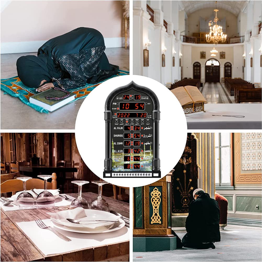 Réveil Matin The Friendly Trading Company Réveille-matin - En Forme Comme Une Horloge Appel à La Prière Vvikizy Réveil mural Azan d'alarme de prière islamique pour Muslims Mosquée Azan Prière Horloge Mosquée Islamique Azan Calendrier Musulman... Choisissez Azan ou une cloche qui sonne par la sélection de l'interrupteur à l'arrière de l'horloge. Doté d'une voix enregistrée en chantant l'alarme. Activer / désactiver l'alarme avec minaret à droite. Va se réveiller le plus profond sommeil avec l'Azan Islamique traditionnelle appel à la prière. L'alarme est très fort - il va vous réveiller! Piles requises: 3 AA / R6 (Cette horloge peut être réglé pour un temps - pas 5 prière fois par jour) S'allume lorsque l'alarme sonne Fonction réveil avec sons personnalisés : les utilisateurs peuvent créer 5 alarmes quotidiennes personnalisées avec des pistes de récitation coran en option. Chaque alarme affiche les versets arabes correspondants avec des traductions en anglais