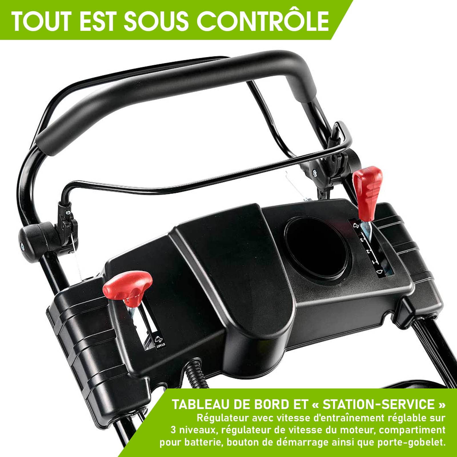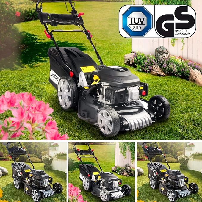 Si vous avez des questions ou si vous avez un problème, notre équipe française de service et de réparation est à votre disposition. 4 fonctions différentes au choix : tondre, mulching, ramasser ou éjecter latéralement pour un travail parfait sur votre pelouse tout au long de l'année Notre tondeuse à gazon a été testée par le TÜV et a reçu le label Tested Safety (sécurité attestée). La fourniture de pièces détachées est également assurée à long terme Un peigne à gazon innovant dans le spoiler avant redresse l'herbe et assure de meilleurs résultats de coupe Au bas du châssis, vous pouvez également régler la hauteur du guidon en trois hauteurs selon vos besoins BRAST tondeuse therique 3 roues TRIKE SPEED 224cc 53c autotractée... Données techniques: Moteur : moteur 4 temps à soupapes en tête refroidi par air, Déplacement : 224 cm3 Démarrage facilepar câble grâce au régulateur de vitesse du moteur et à la pompe primaire Le meilleur torque possible grâce au régulateur de vitesse du moteur Guidon ergonomique à prise souple pour un travail confortable. Entonnoir de décharge latéral inclus Données techniques: Moteur : moteur 4 temps à soupapes en tête refroidi par air - Déplacement: 224 cm3 - Puissance : 5,2 kW (7 PS) à une puissance de rotation nominale de 2., 800 tr/min - Largeur de coupe 508 mm - Carburant: super sans plomb - Poids: 32 kg - Dimensions: 1500x540x1700mm - Sac à herbe: 60 litres - Traction arrière - Hauteur de coupe réglable centralement 6 niveaux 30-80mm - Roues Big Wheeler montées sur roulements à billes, 305 mm à l'arrière et 203 mm à l'avant - Châssis métal Grâce à notre régulateur de vitesse à commande manuelle, en contrôlant le régime moteur, vous pouvez régler un meilleur torque, moins de bruit et moins de consommation de carburant ou augmenter la vitesse de la lame avec un meilleur schéma de coupe selon vos besoins Moteur 4 temps de marque OHV très puissant avec une cylindrée de 224 cm3 et une puissance de 5,2 kW (7PS) BRAST Tondeuse Therique tractée 53c 224cc 7cv déarrage électrique... Réglage central de la hauteur de coupe à 6 niveaux de confort 30-80mm Puissance : 5,2 kW (7 PS) à une puissance de rotation nominale de 2 800 tr/min Système de traction arrière, permettant de tondre sans effort et sans pousser (l'auto-propulsion peut être désactivée à tout moment, par exemple pour les manœuvres) Tondeuse Thermique Autotractée BRAST Tondeuse Thermique Tractée Mulching 51cm 224cc Moteur Tondeuse Mulching 60l 4 fonctions en 1 machine pour une culture parfaite du gazon tout au long de l'année Grande largeur de coupe de 51 cm pour les pelouses moyennes à grandes Instructions d'utilisation en francais très détaillées Réglage central de la hauteur de coupe par 6 fois L'approvisionnement en pièces détachées est garanti à long terme, nous disposons de notre propre atelier de réparation avec toutes les pièces détachées et pouvons vous proposer les bons accessoires même après des années. Notre super puissant certifié TÜV/GS comprend un régulateur de vitesse du moteur, un réglage central de la hauteur de coupe à 6 niveaux, un guidon ergonomique réglable en hauteur sur 3 niveaux, un sac de ramassage d'herbe de 60 litres avec indicateur de niveau, l'ingénieux système de nettoyage Easy-Clean, des roues Big Wheeler particulièrement larges de 203/305 mm, un peigne à gazon et un châssis en tôle d'acier extrêmement robuste Largeur de coupe 508 mm De plus, notre groupe moteur certifié TÜV est équipé d'un régulateur de vitesse, d'un réglage central de la hauteur de coupe à 6 niveaux, d'un sac de ramassage de l'herbe de 60 litres avec indicateur de niveau, de l'ingénieux système de nettoyage Easy-Clean, d'un peigne à gazon et d'un châssis en tôle d'acier extrêmement robuste. Certification TÜV :Cet appareil a été testé par le centre d'essai accrédité TÜV Süd et a reçu la marque de contrôle Tested Safety (sécurité attestée). Lame de coupe affutée de haute qualité en acier spécial Hauteur de coupe centrale réglable 6 niveaux 30-80mm eilleure tondeuse therique à déarrage électrique » Guide Jardin